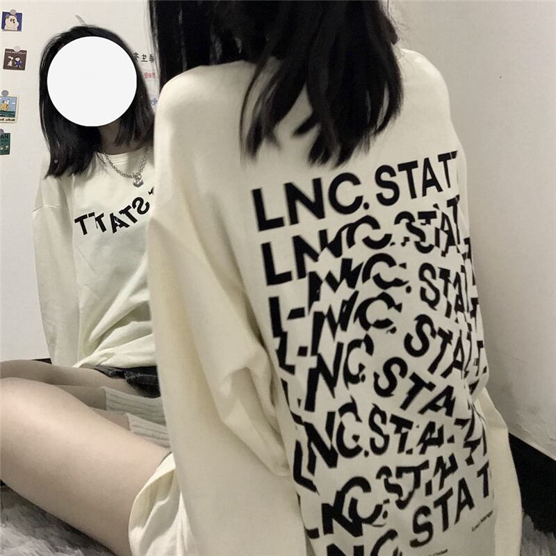 トレンドシャツ オータムスタンダードプリントゆったり韓国ファッションルーズTシャツ ロング レトロ 秋物 スタイル 長袖 デーモン2097446