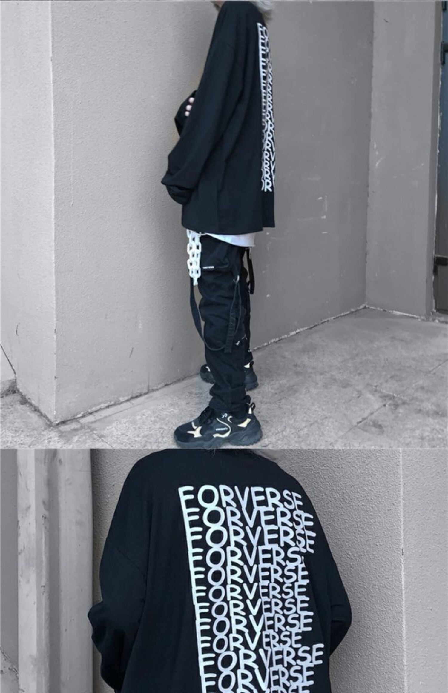 ブラックTシャツシャツ レディーストレンドスタイルダークプリントゆったり韓国ファッションルーズトップス ロング 原宿 ボーイズ 長袖 デーモン9868872