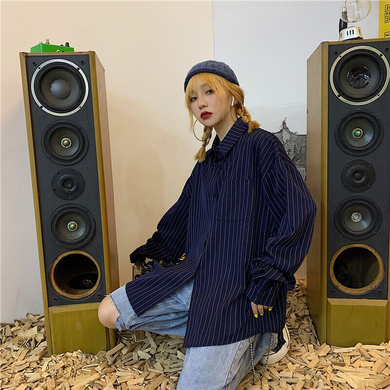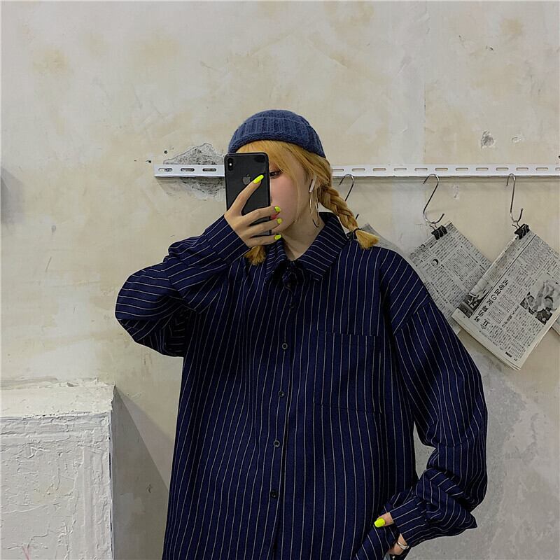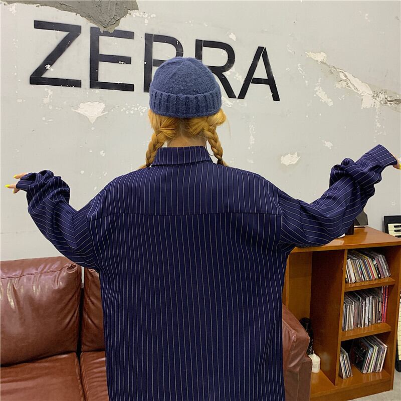 秋物ルーズカジュアルジャケット 韓国ファッショントレンドスタイルストライプシャツ スタンダードレディース ロング レトロ 原宿 オータム ボーイズ 長袖 Museum4316706