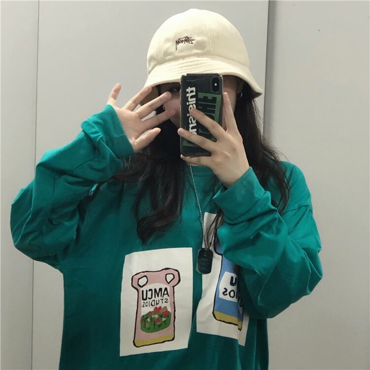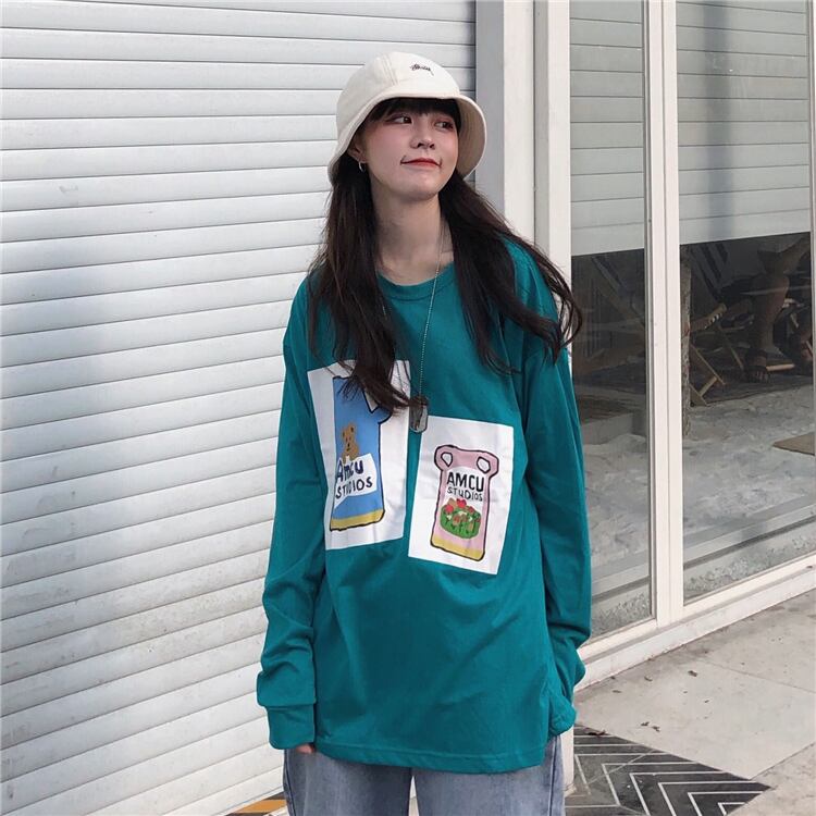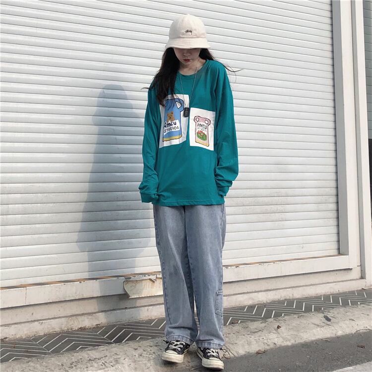 Tシャツオータムトレンド韓国ファッションプリントゆったりルーズトップス ロング 秋物 ボーイズ 長袖 デーモン3856234