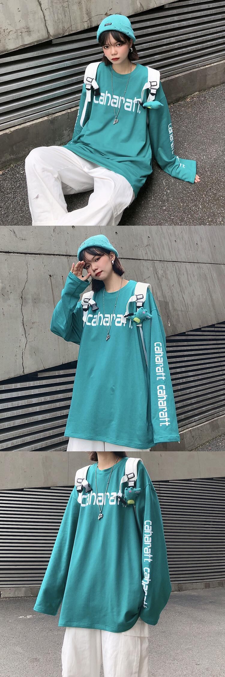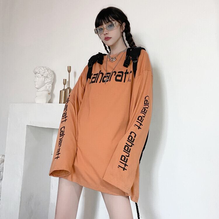 Tシャツシャツ ジャケット レディースオータム韓国ファッショントレンドスタンダードプリントゆったりルーズ ロング レトロ 原宿 秋物 スタイル 長袖 デーモン7683052