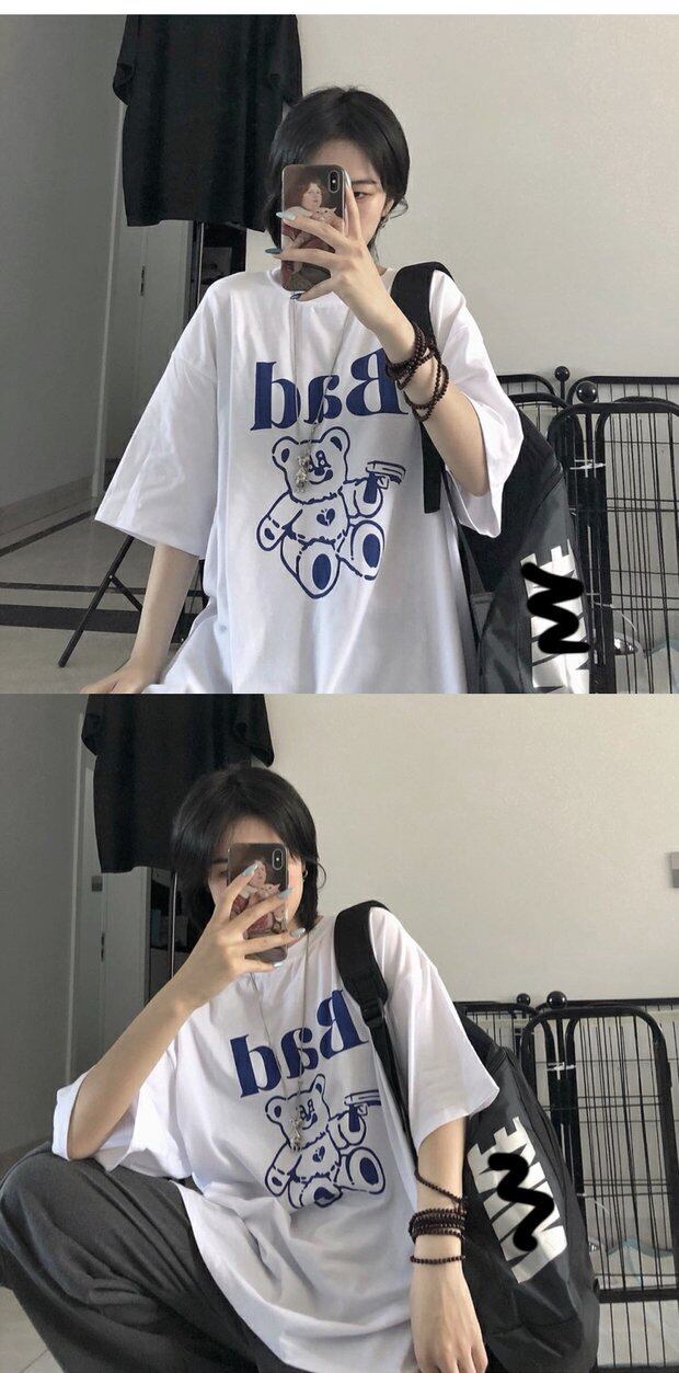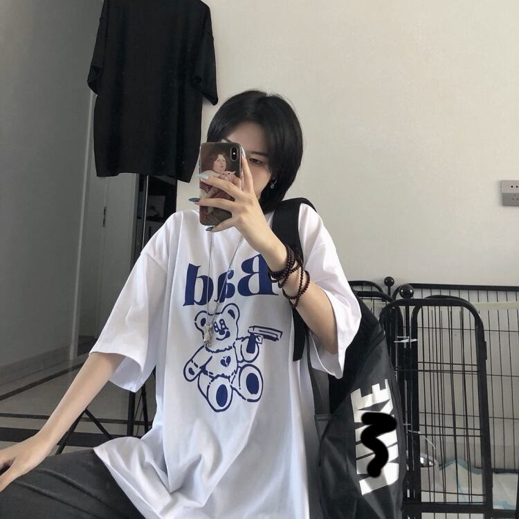 Tシャツシャツ レディース夏服トレンド韓国ファッションプリント柄ホワイトルーズ 夏物 スタイル デーモン8795525