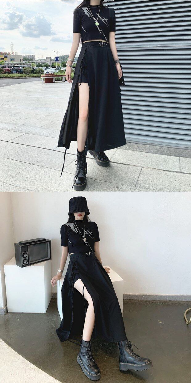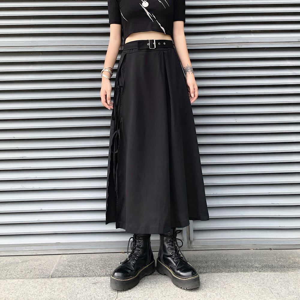 スカート 夏服韓国ファッショントレンドスタンダードブラックAラインハイウェストウェスト薄手ショートレディース レトロ 夏物 スタイル ウエスト デーモン9816577