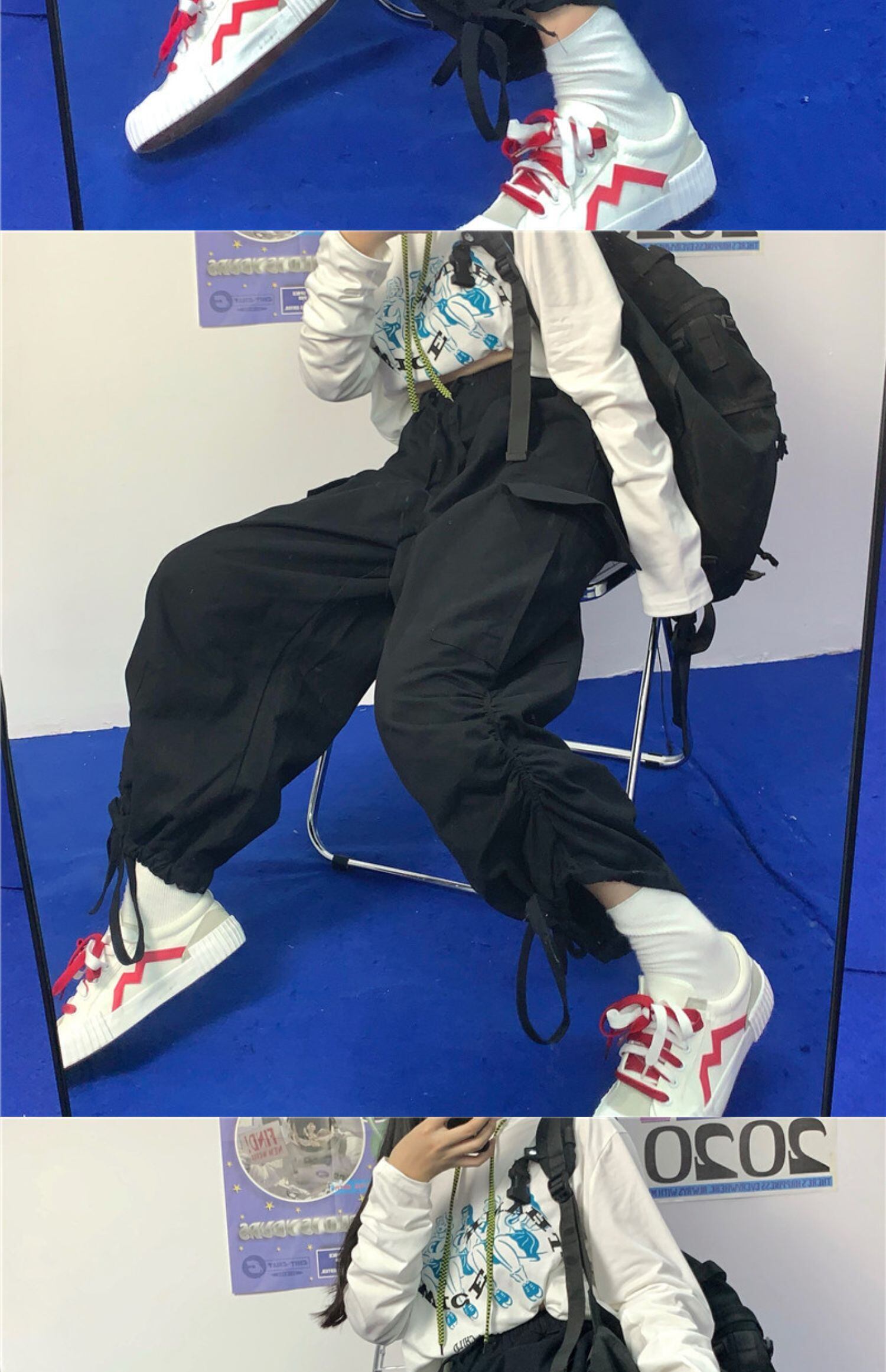 パンツ レディーストレンドホワイトギャザールーズハイウェストウェストワイドレッグパンツ ワイドパンツ ボーイズ ウエスト デーモン1610211