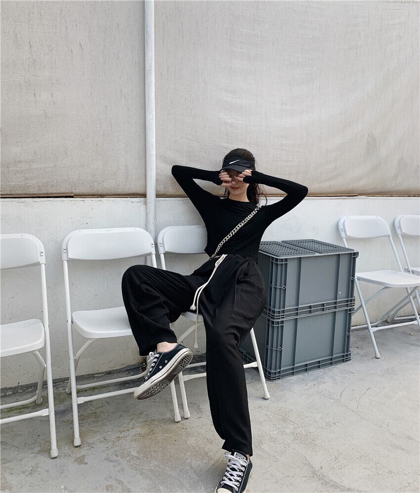 パンツ レディーストレンドブラックルーズ薄手ハイウェストウェスト ウエスト デーモン0647134