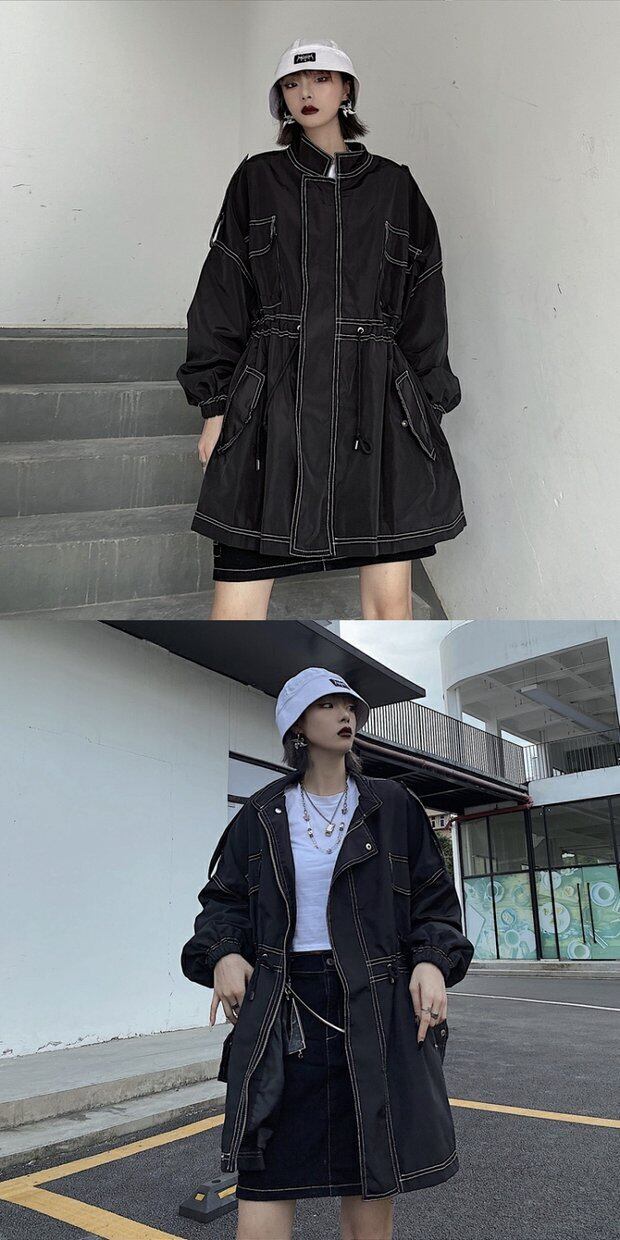 オータム韓国ファッショントレンドスタンダードブラックルーズジャケット レトロ 秋物 ミドル丈 デーモン0309864