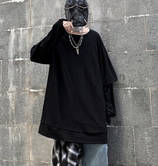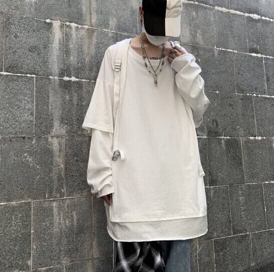 Tシャツシャツ トップス レディースオータムトレンド韓国ファッションソリッド カラールーズゆったり ロング 秋物 ソリッドカラー ボーイズ スタイル 長袖 デーモン7457470