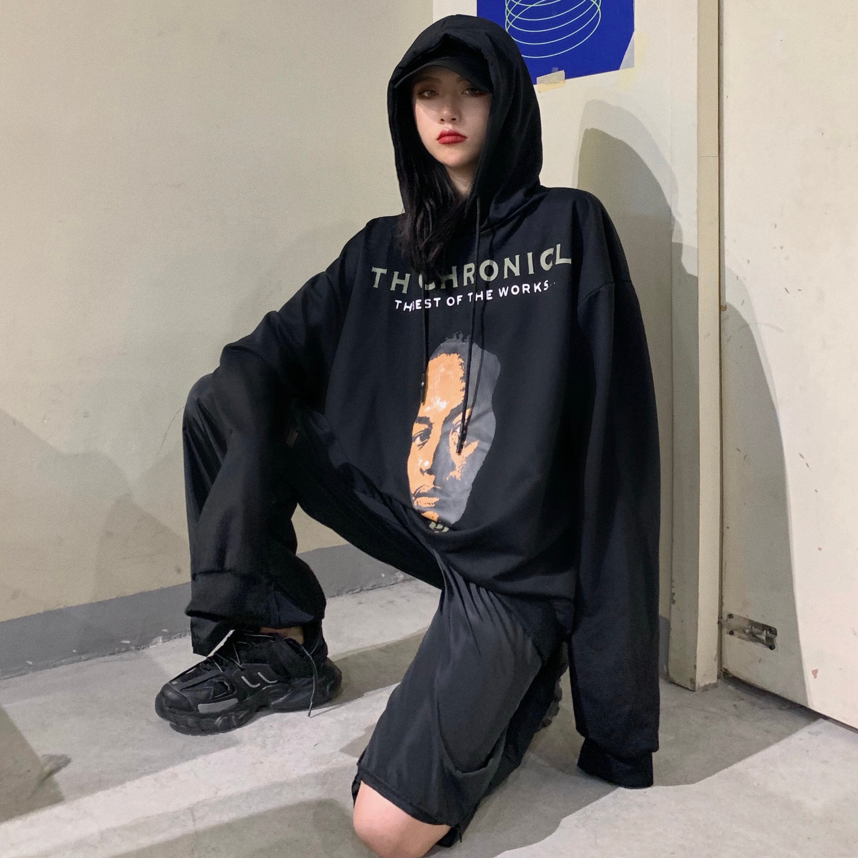 シャツ オータムトレンド韓国ファッションダークプリント柄フードセーター 自然派ルーズスタイル ロング 秋物 長袖 デーモン4630919