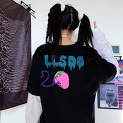 オータム レディーストレンド韓国ファッションプリントブラックルーズラウンドネックTシャツ ロング 秋物 Oネック 長袖 デーモン1570028