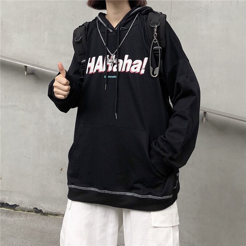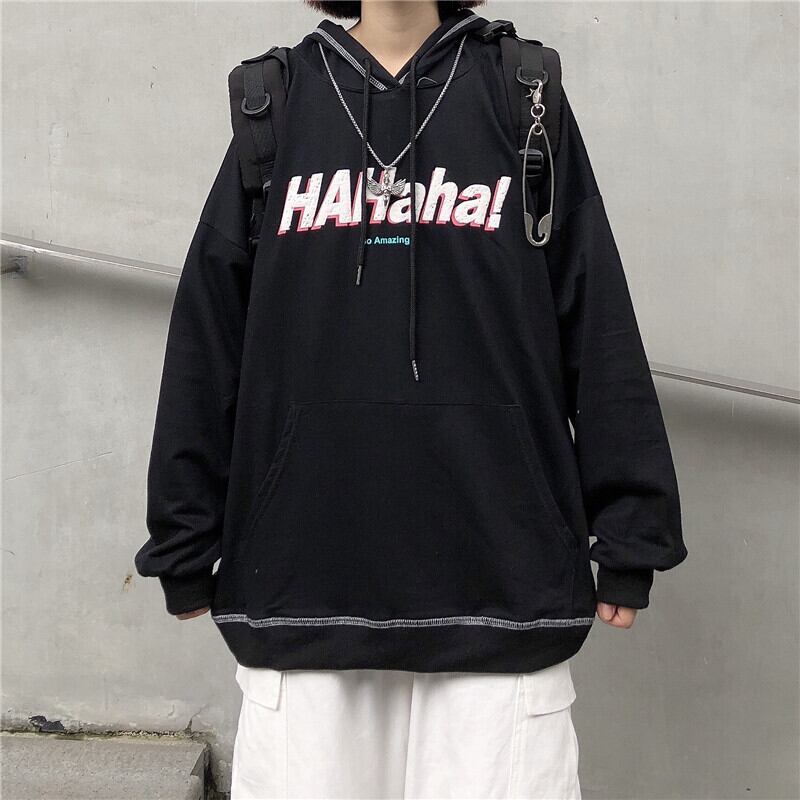 セーター レディースオータム韓国ファッショントレンドフードシャツ ブラックルーズジャケット ロング 秋物 スタイル 長袖 デーモン1540804