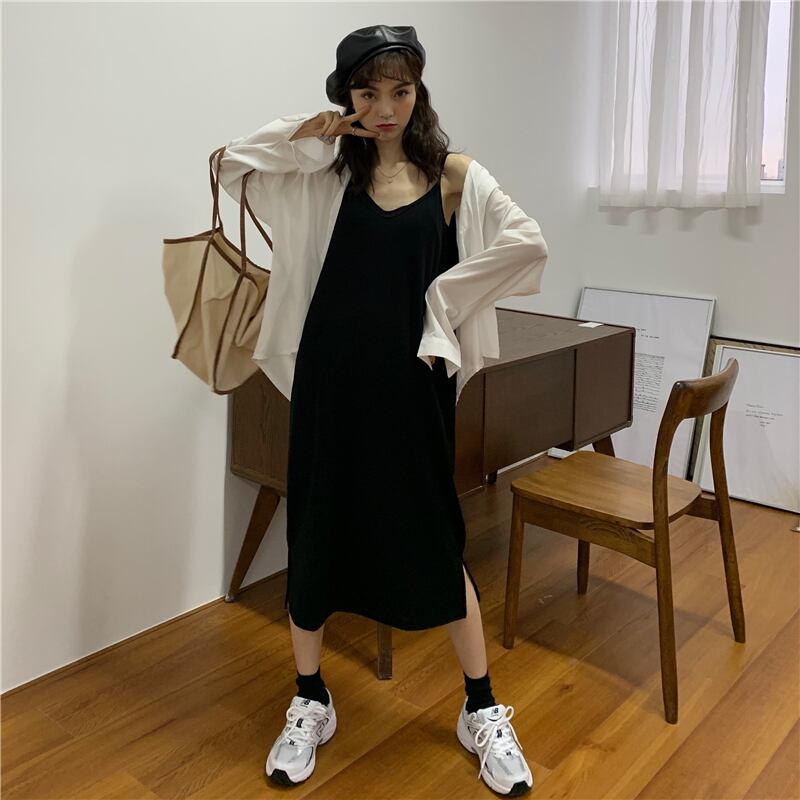 韓国ファッションブラックワンピース夏服スタイル薄手 夏物 ミドル丈 Museum4707336