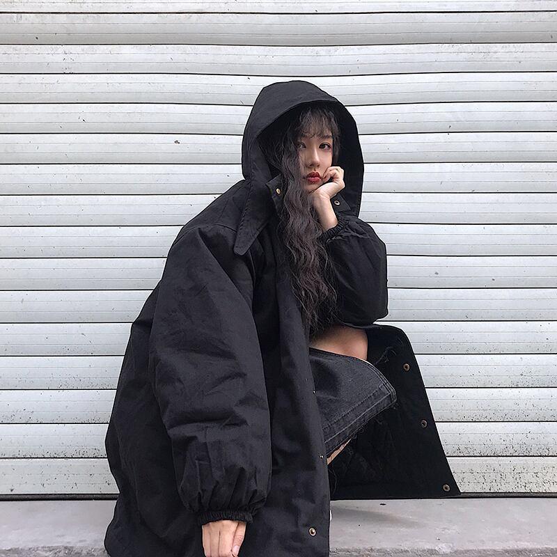 レディースブラックジャケット スタイル韓国ファッションルーズロング コットン 原宿 Museum9408070