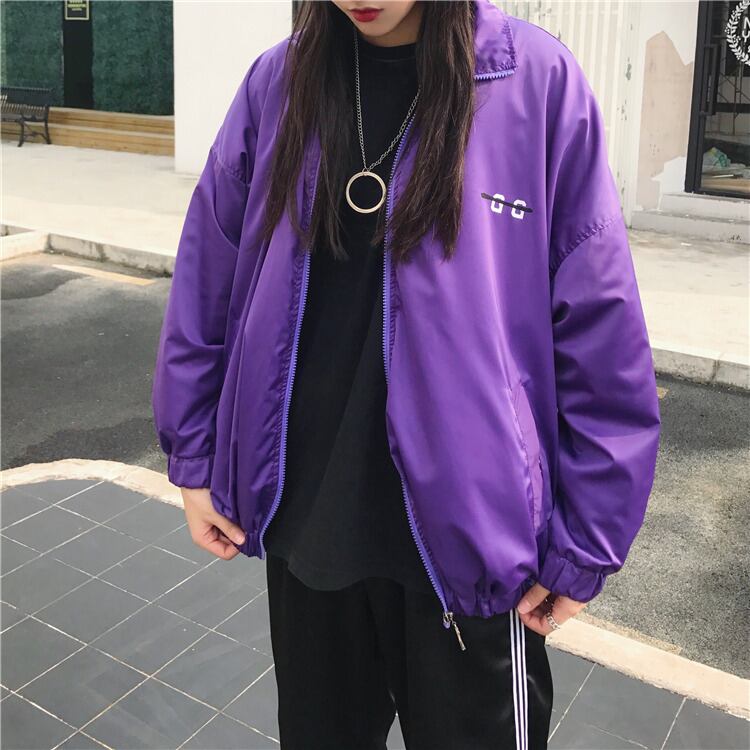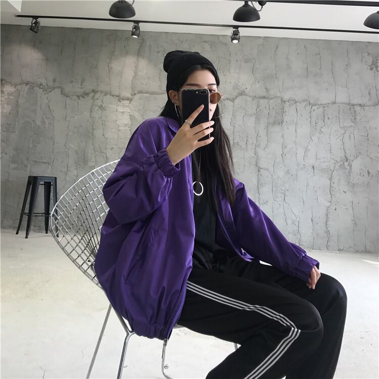 スプリングジャケット レディース韓国ファッションソリッド カラープリント薄手ルーズ 春物 ソリッドカラー パープル Museum34805613426
