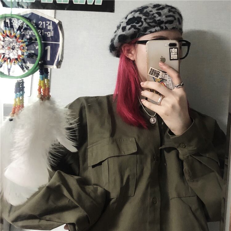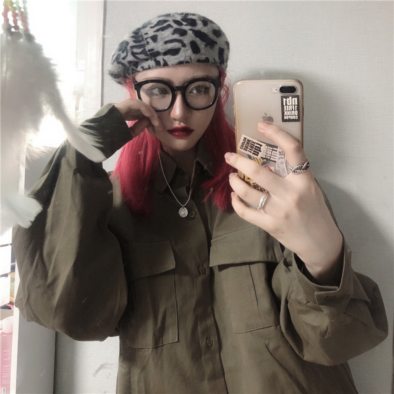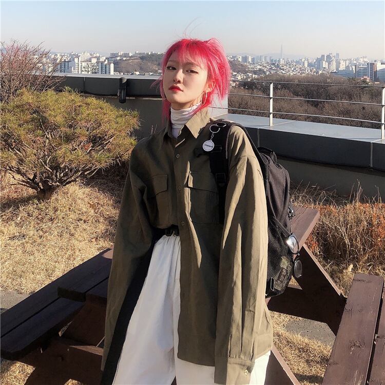 シャツ レディースメンズスプリング韓国ファッショントレンドポケットスタンダードトップス ロング レトロ ストリート 春物 長袖 Museum6438685613