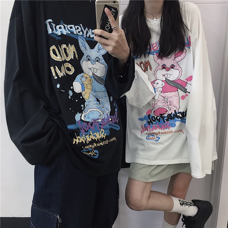 Tシャツシャツ レディース秋物韓国ファッショントレンドダークプリント柄ゆったりルーズトップス ロング オータム ボーイズ スタイル 長袖 デーモン83404557196