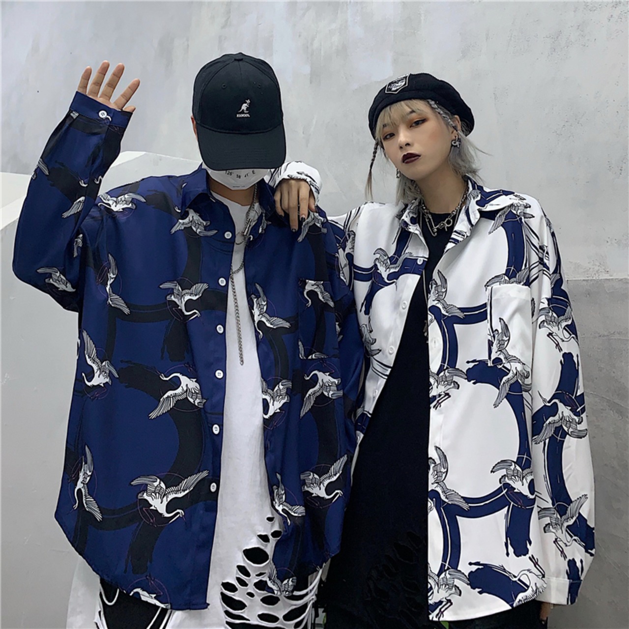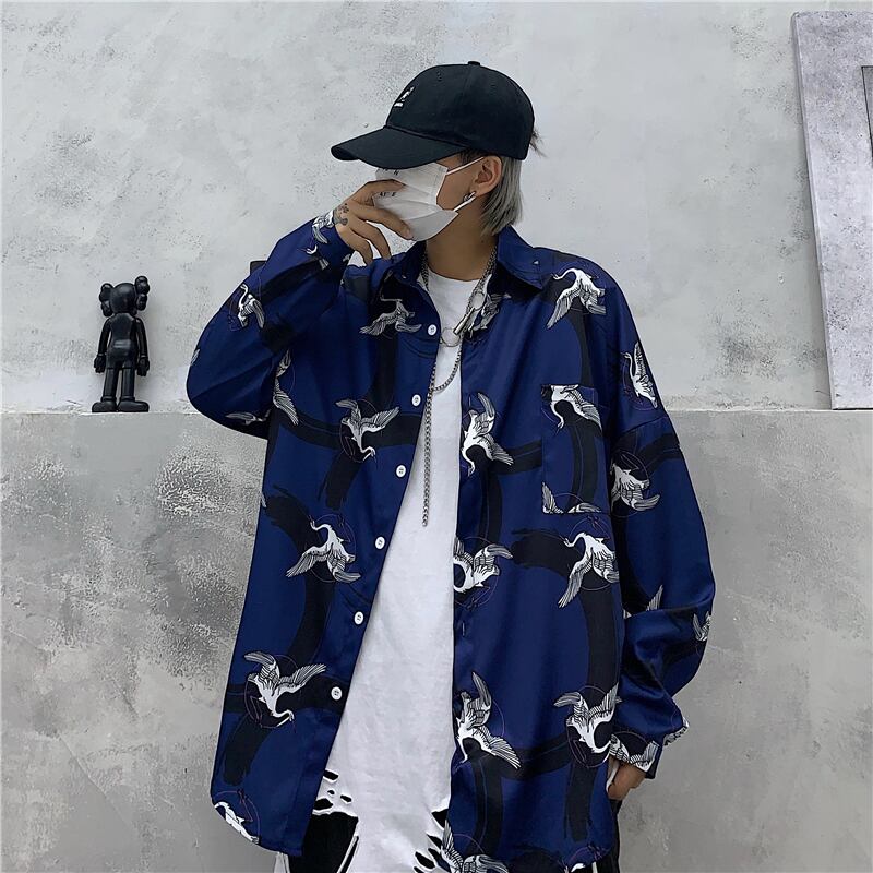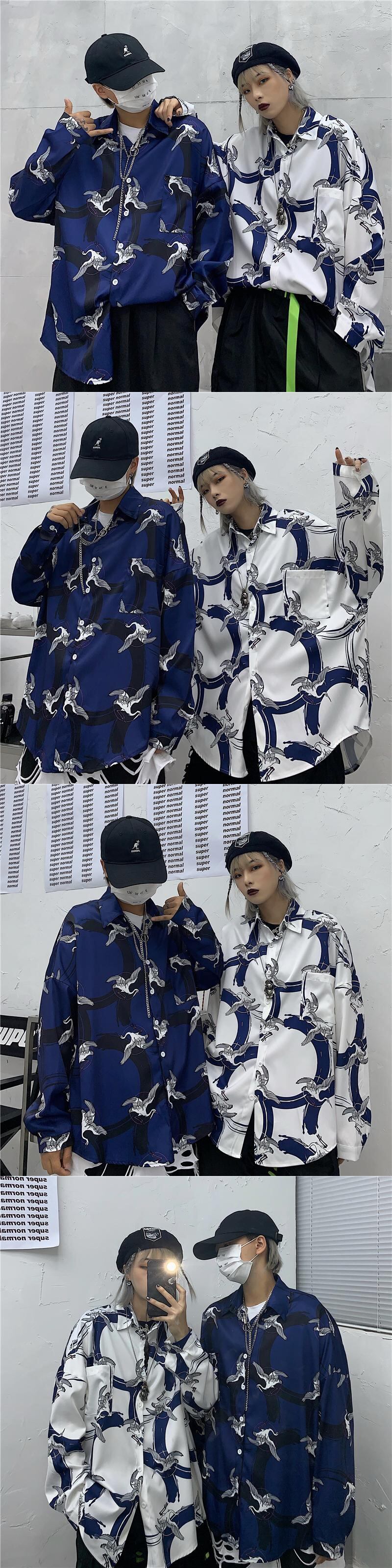 プリント柄シャツ トレンドスタンダードメンズレディースルーズ ロング レトロ ストリート 原宿 長袖 Museum76160463189