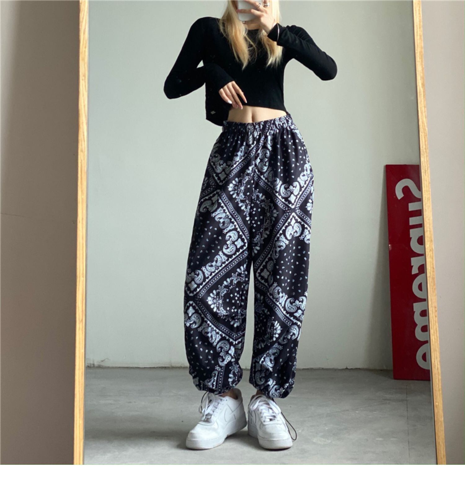 パンツ レディーストレンドFlowerデザイン ブラックハイウェストウェストルーズ薄手カジュアル フラワーデザイン ウエスト デーモン94141731244