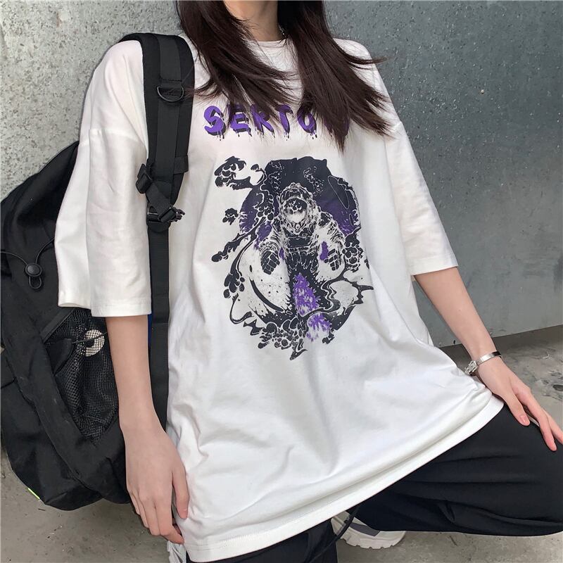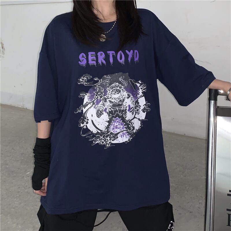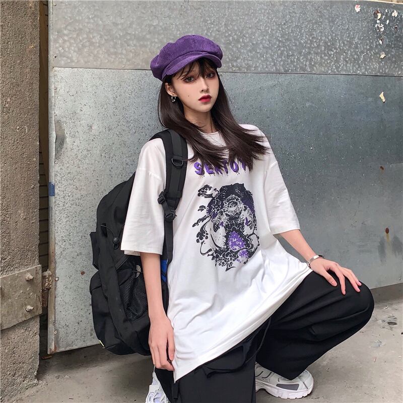 レディーストレンド夏服韓国ファッションプリントラウンドネックルーズTシャツトップス 原宿 夏物 Oネック スタイル Museum81962530521