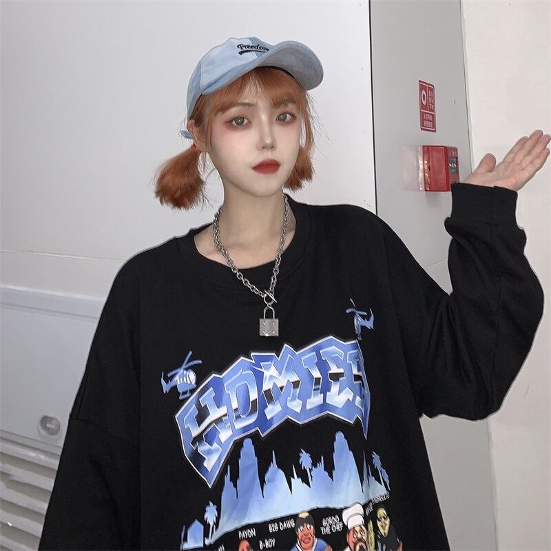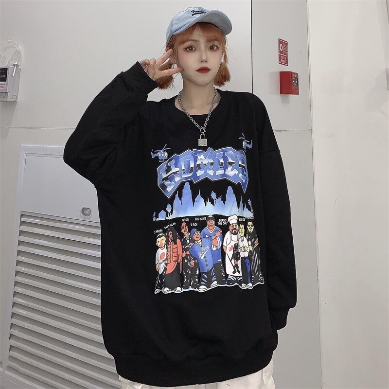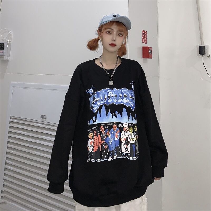 ジャケット 秋物韓国ファッショントレンドスタンダードプリント柄ルーズラウンドネックセーター ロング レトロ オータム Oネック ボーイズ スタイル 長袖 デーモン64491589921