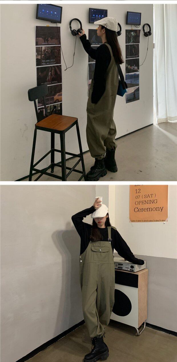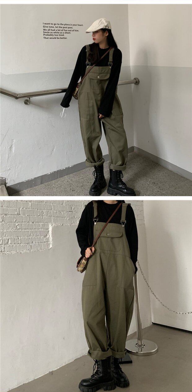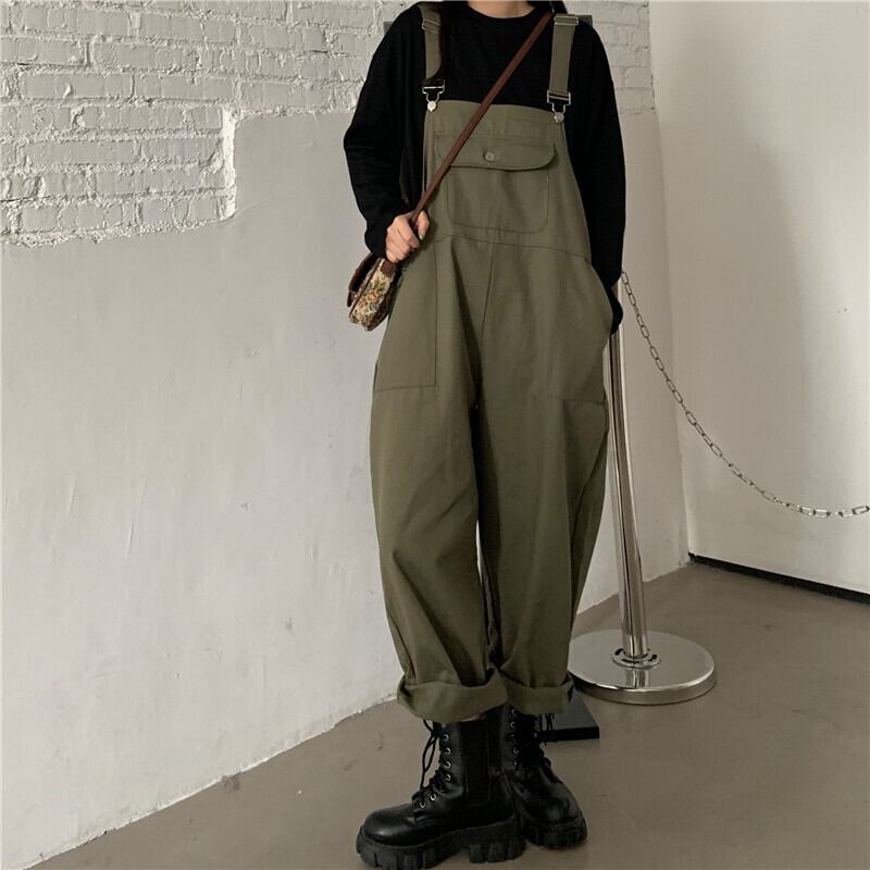 色:ブラックT,アーミーグリーンビブパンツ