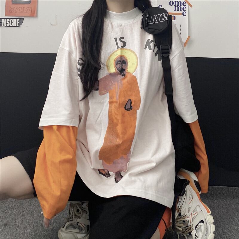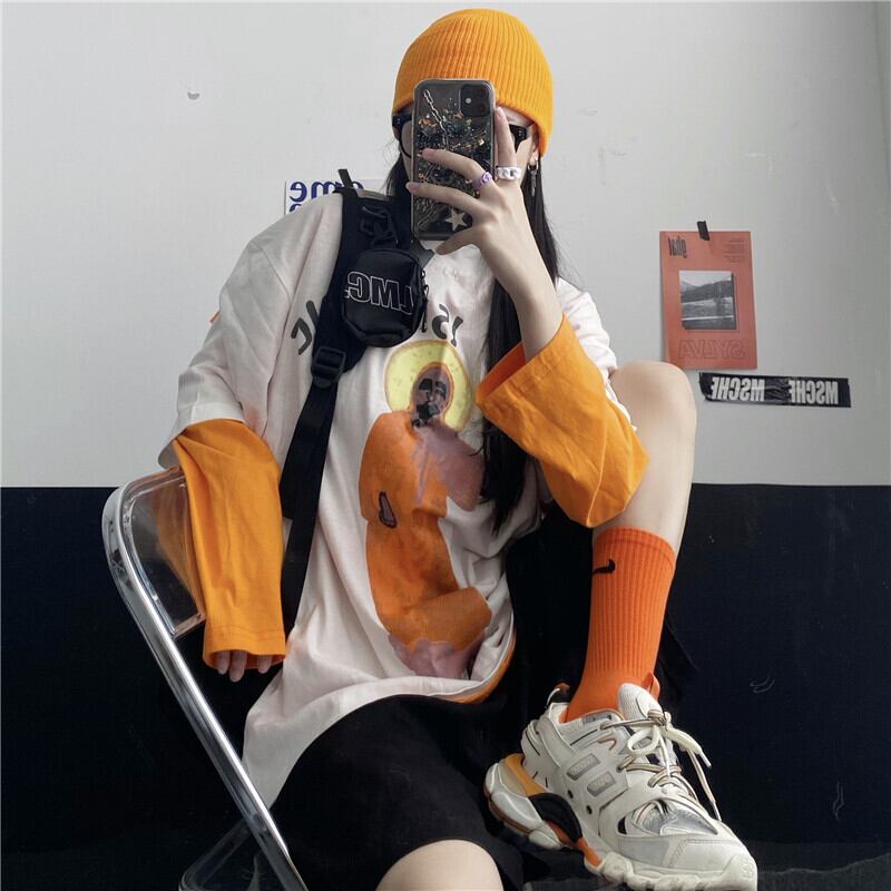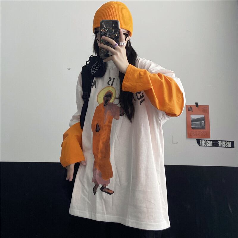 Tシャツトップス レディース秋物韓国ファッショントレンドスタンダードプリントルーズ ロング レトロ オータム ステッチ スタイル 長袖 デーモン42422084955