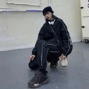 パンツ 韓国ファッショントレンドブラックハイウェストウェストルーズ薄手 ストリート ボーイズ スタイル ウエスト デーモン11190640185