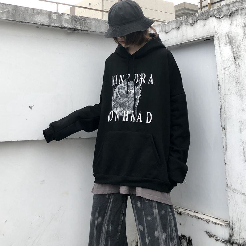 セーター レディース秋物韓国ファッショントレンドダークプリント柄シャツ ルーズフードジャケット ロング オータム スタイル 長袖 デーモン44602334473