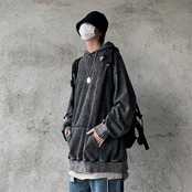 秋物セーター レディース韓国ファッショントレンドダークフードトップス ルーズプルオーバー ジャケット ロング オータム ボーイズ スタイル 長袖 デーモン2491418750