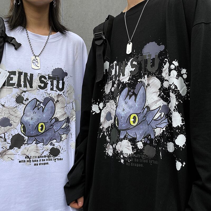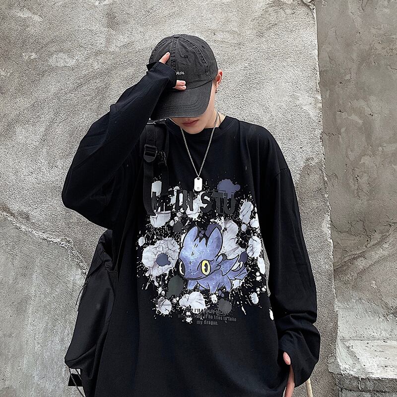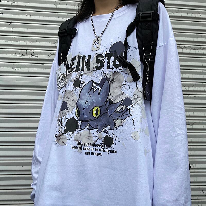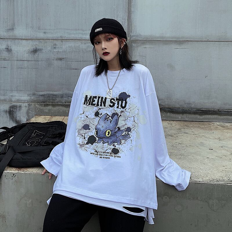 トップス レディース秋物韓国ファッショントレンドプリントTシャツルーズ ロング オータム ボーイズ スタイル 長袖 デーモン32339186211