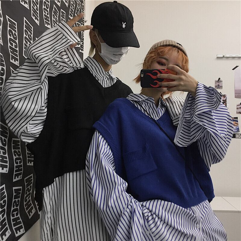 色:黒いシャツ,青いシャツ,黒のベスト,青いベスト