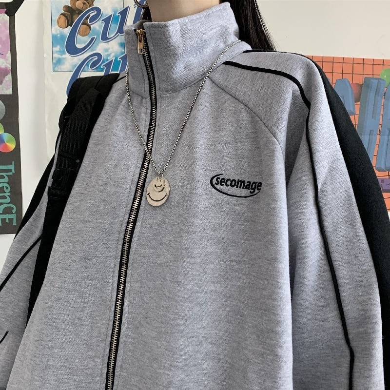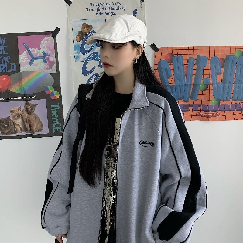 トップス 秋物韓国ファッショントレンドジッパーセーター ルーズジャケット ロング 原宿 オータム スタイル 長袖 デーモン39619278779