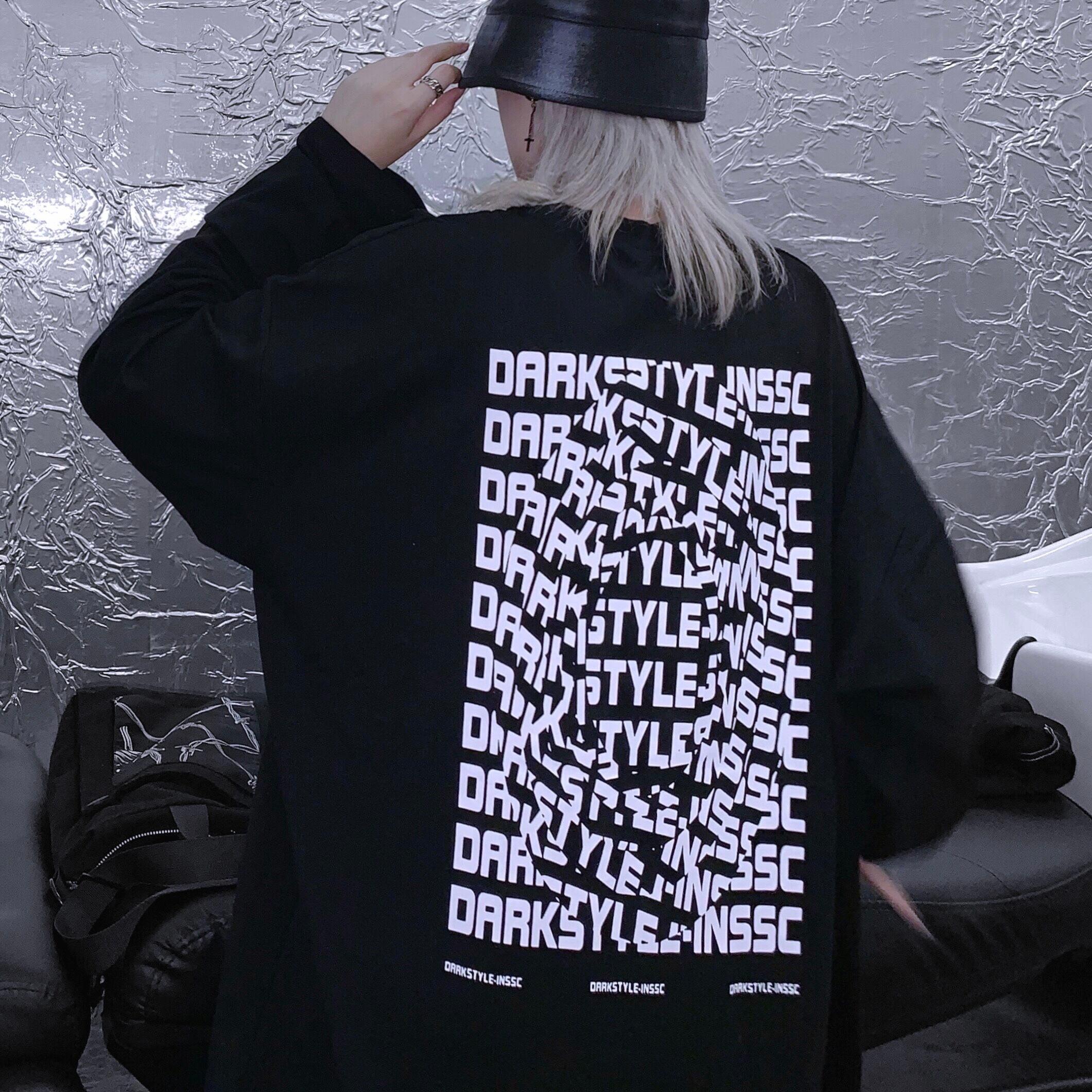 トップス レディース秋物韓国ファッショントレンドダークプリントブラックルーズTシャツ ロング オータム ボーイズ スタイル 長袖 デーモン77251888942