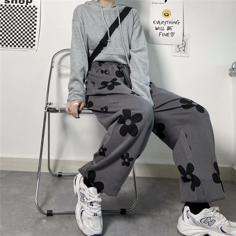ギャザーレディース秋物韓国ファッショントレンドプリントパンツ ハイウェストウェストルーズグレーカジュアル オータム ボーイズ スタイル ウエスト デーモン62426342578