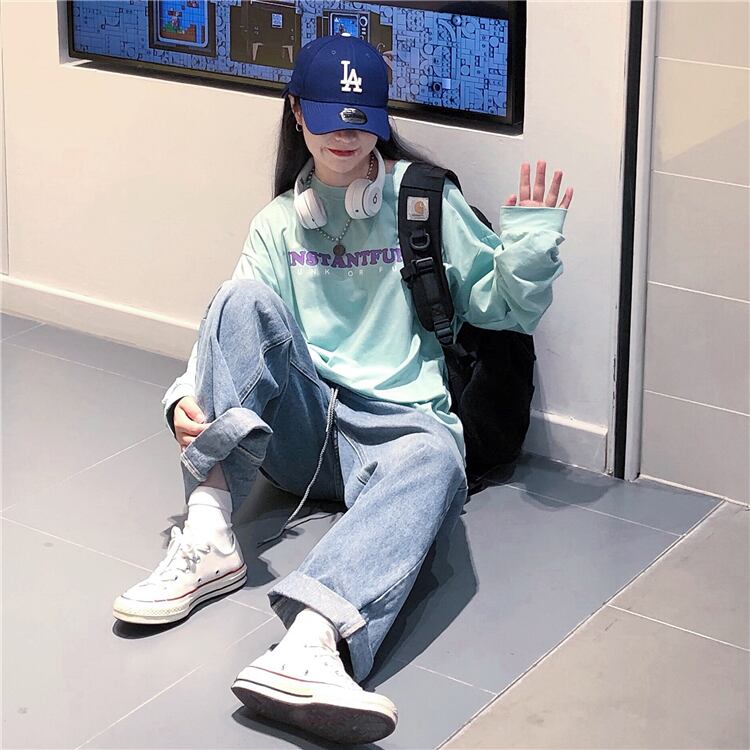 トップス 秋物韓国ファッショントレンドスタンダードプリントルーズTシャツゆったり ロング レトロ オータム スタイル 長袖 デーモン26749807658