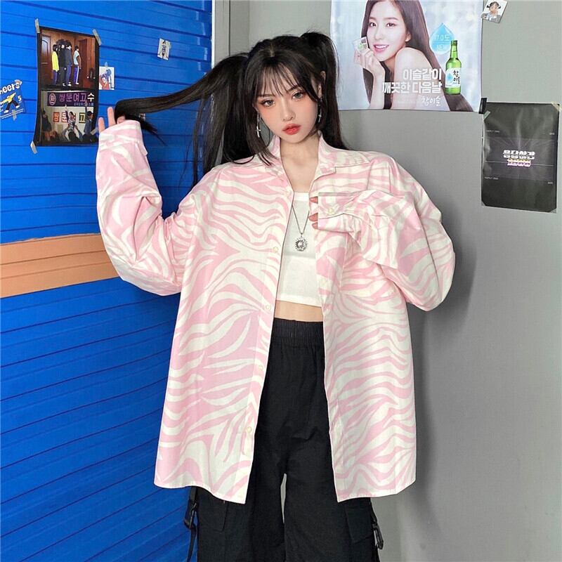 シャツ秋物韓国ファッショントレンドパターンルーズトップス コート ロング ピンク オータム スタイル 長袖 デーモン15893197758