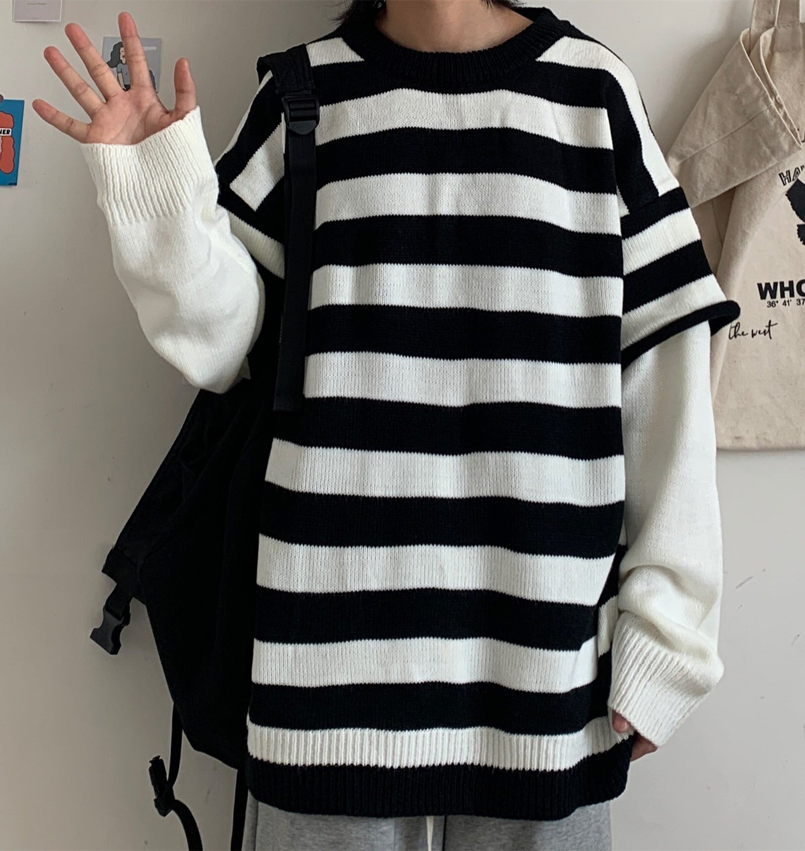 ニットセーター 秋物レディース韓国ファッショントレンドストライプルーズジャケット ロング オータム スタイル 長袖 デーモン73530667376