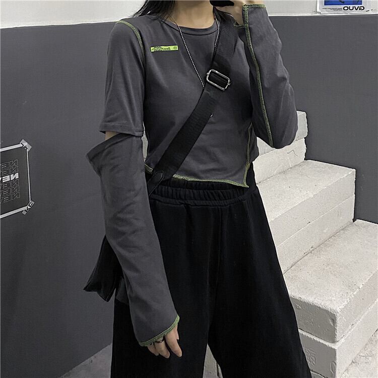 トップス 秋物韓国ファッショントレンドスリムショートTシャツ ロング オータム スタイル 長袖 デーモン93591950051