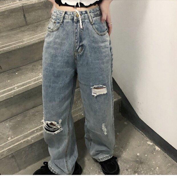 ジーンズ レディース韓国ファッショントレンドパンツ ルーズハイウェストウェストカジュアルワイドレッグ 原宿 ワイドパンツ スタイル ウエスト デーモン61027583187