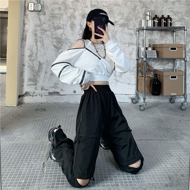 ブラウス 秋物韓国ファッショントレンドショートルーズラウンドネックセーター ロング オータム Oネック ボーイズ 長袖 デーモン36949774214
