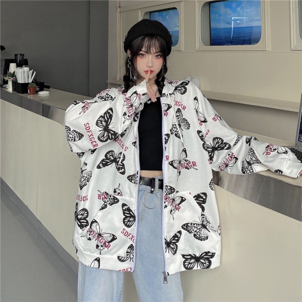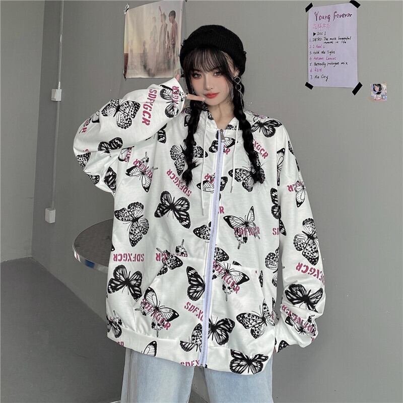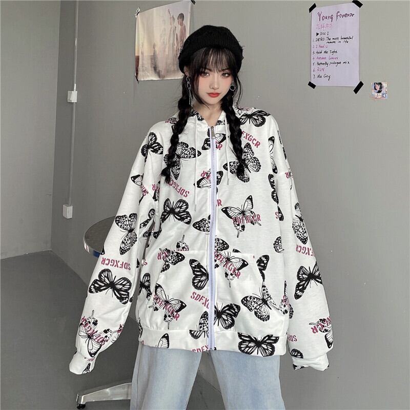 秋物レディース韓国ファッショントレンドスタイルButterflyデザイン ジッパーセーター ルーズフードトップス ロング オータム ボーイズ 長袖 デーモン27378165107
