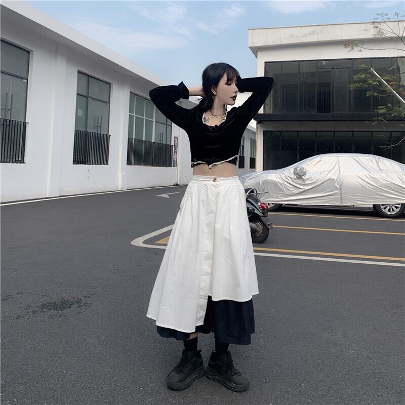 スカート レディース秋物韓国ファッショントレンドAラインハイウェストウェスト オータム ステッチ スタイル ウエスト ミドル丈 デーモン66217667727