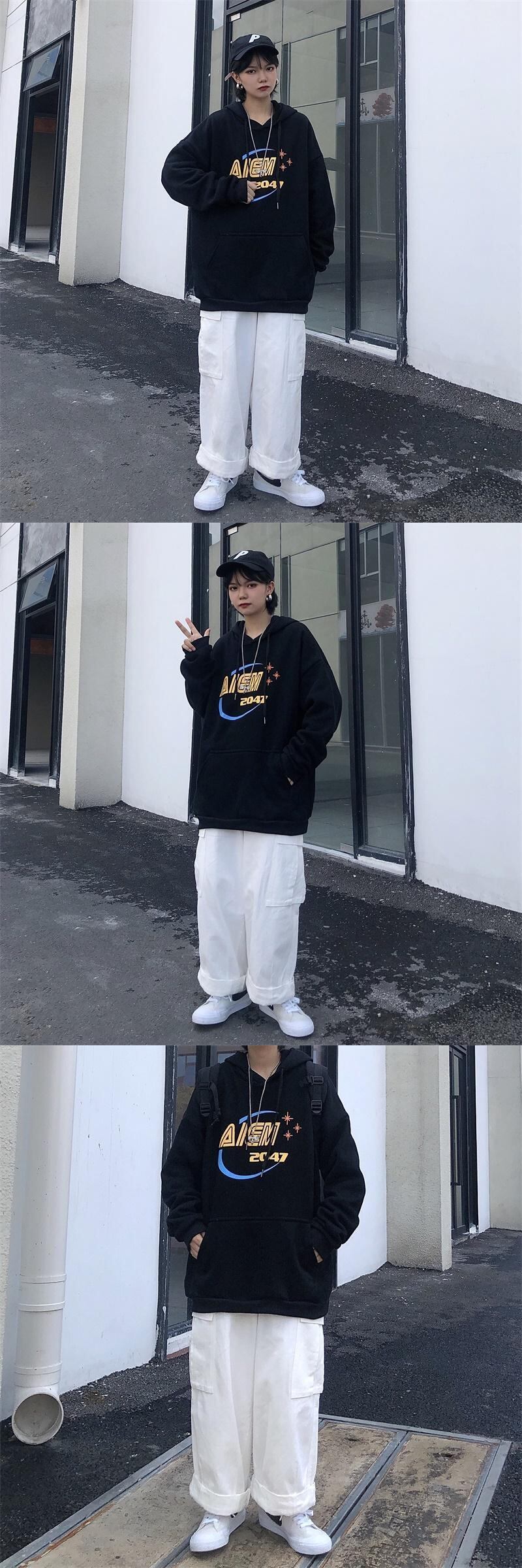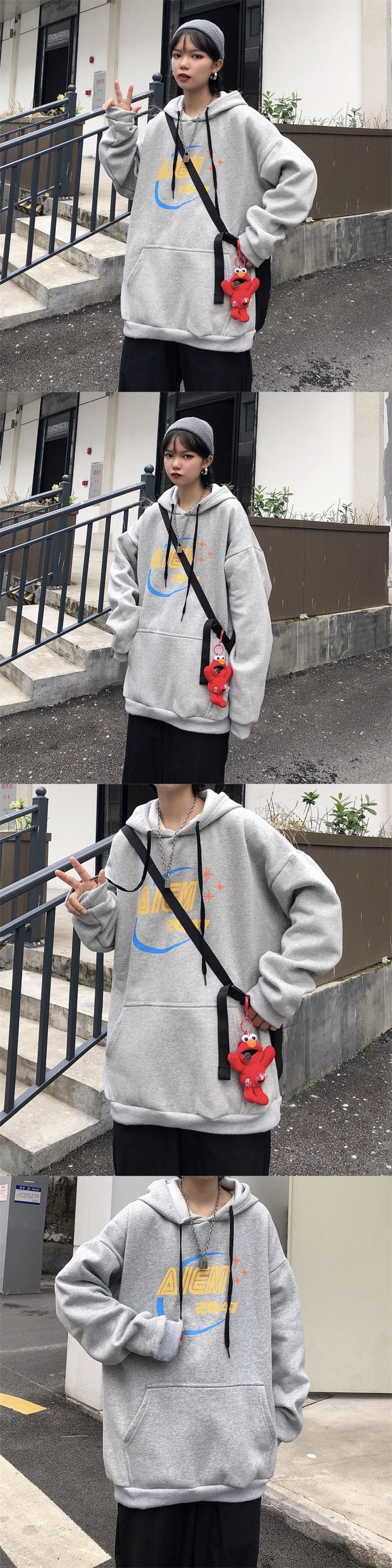 秋物レディース韓国ファッショントレンドスタイルシャツ ルーズフードセーター ロング 原宿 オータム 長袖 デーモン53752795017