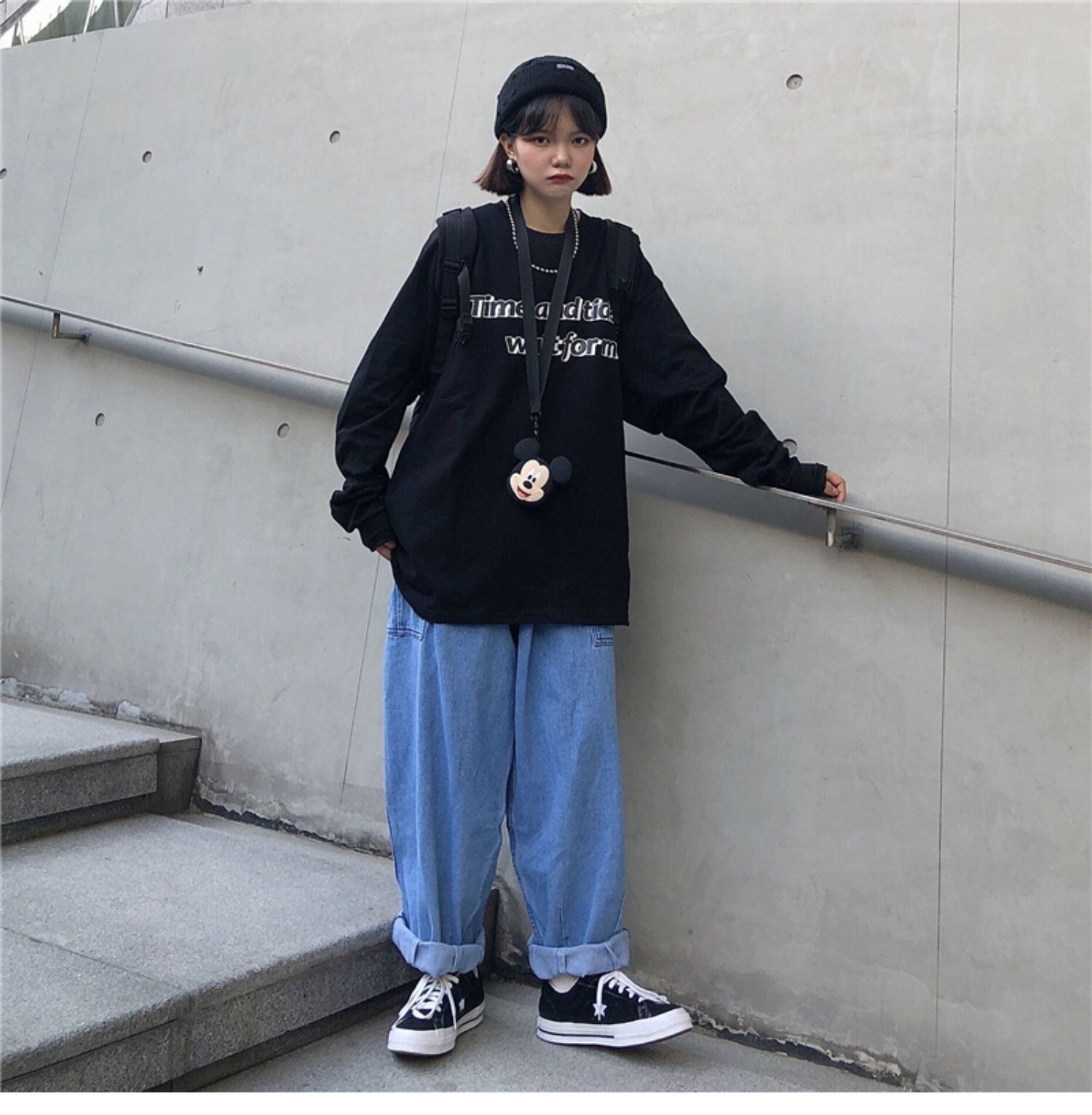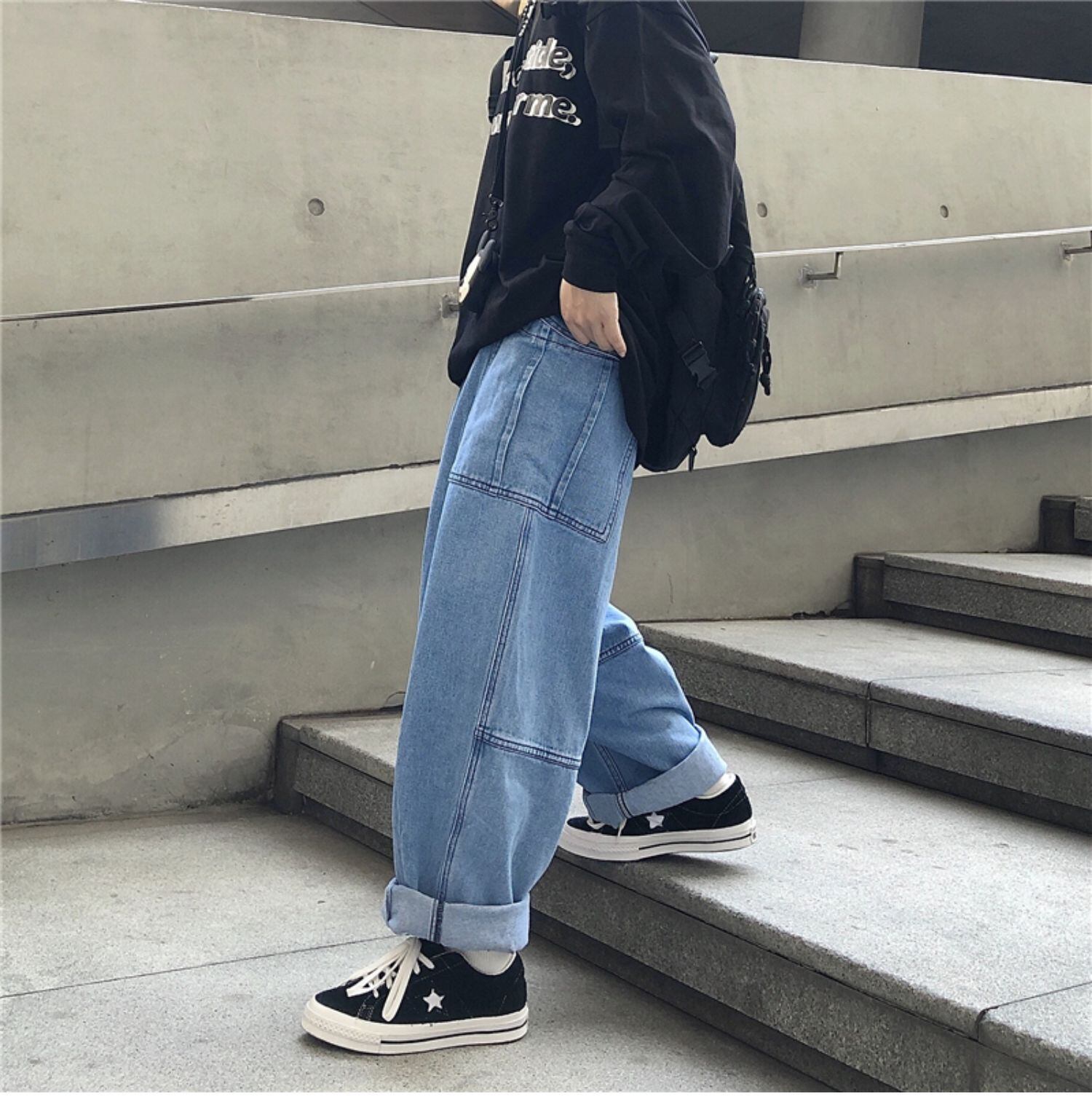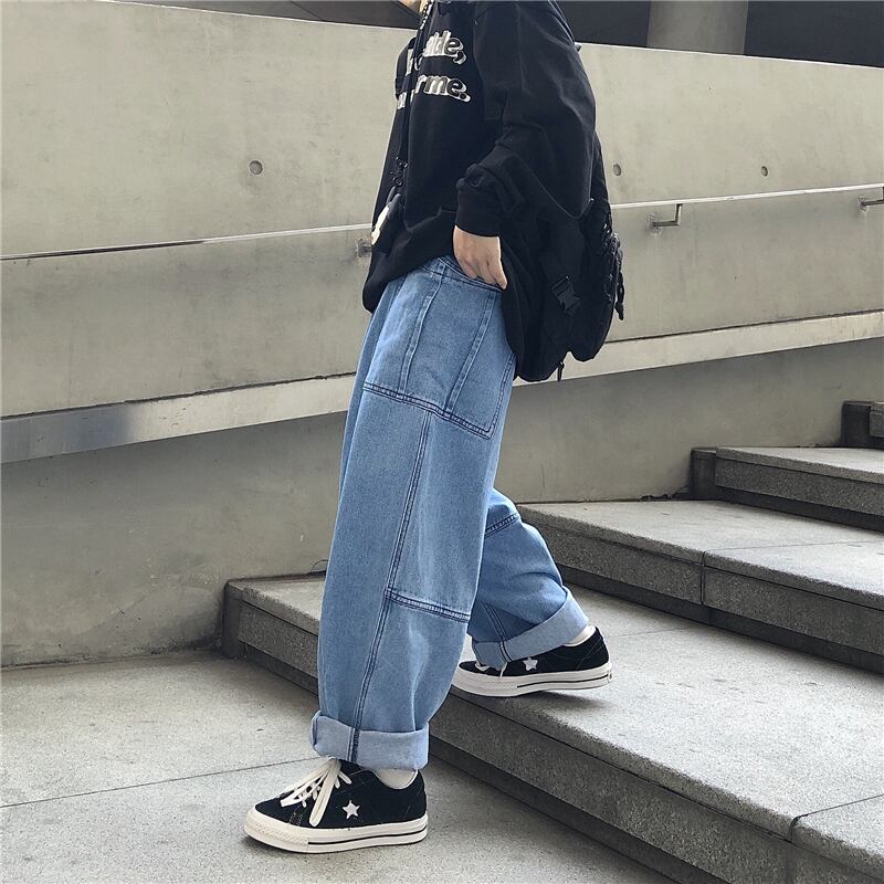 ジーンズ レディース韓国ファッショントレンドルーズハイウェストウェストワイドレッグカジュアルパンツ ワイドパンツ ボーイズ スタイル ウエスト デーモン29337430014