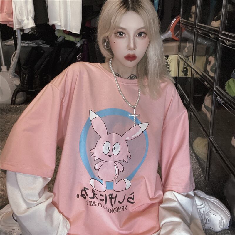 ジャケット 秋物韓国ファッショントレンドプリントセーター ルーズ ロング ピンク オータム ボーイズ スタイル 長袖 デーモン49177568689