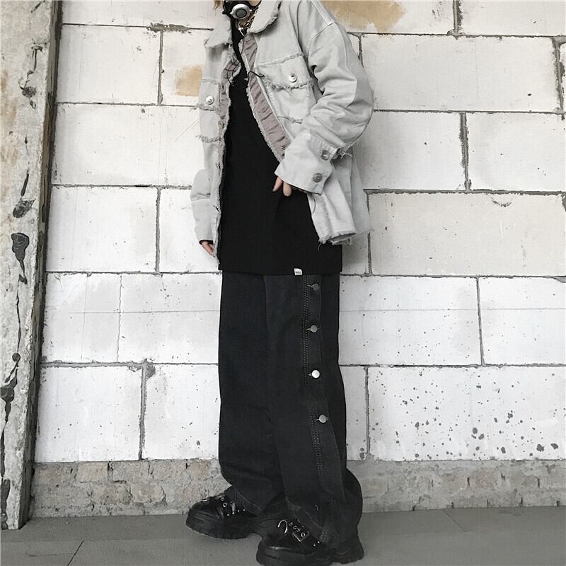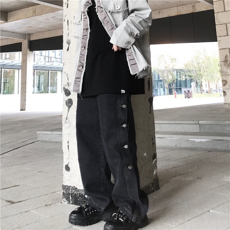 ウェストジーンズ レディース韓国ファッショントレンドブラックルーズ薄手パンツ ボーイズ スタイル ウエスト デーモン24837934574