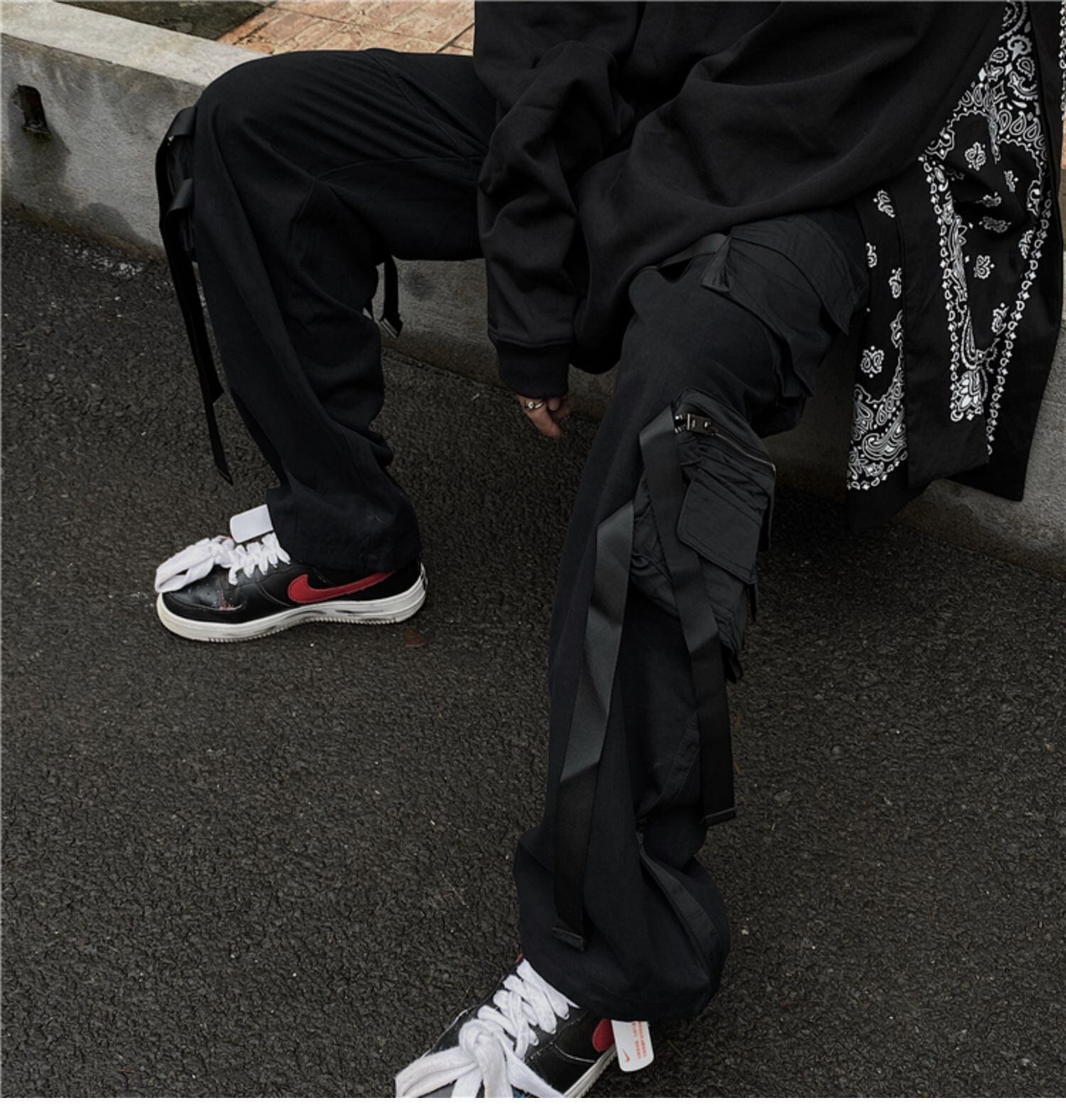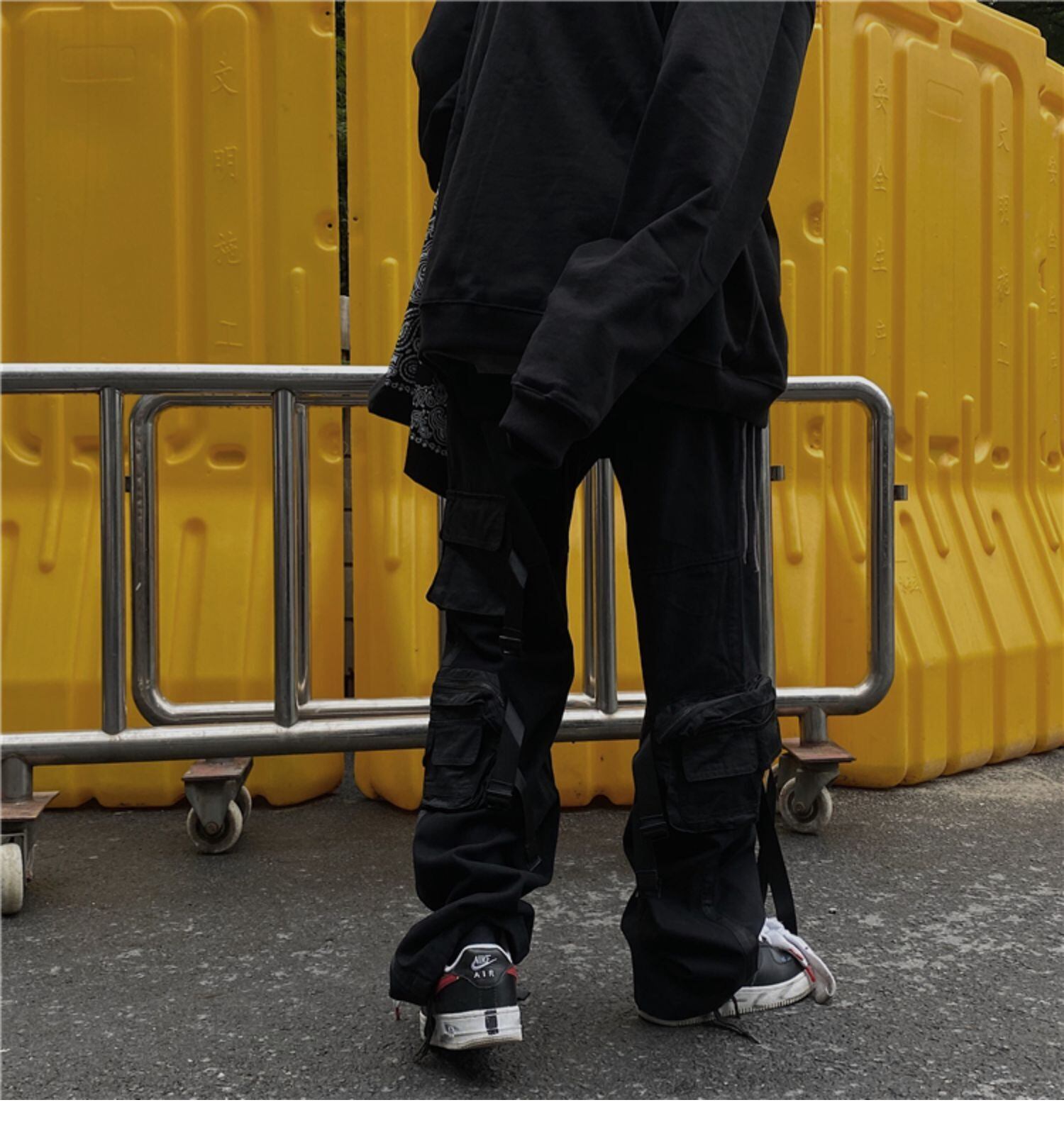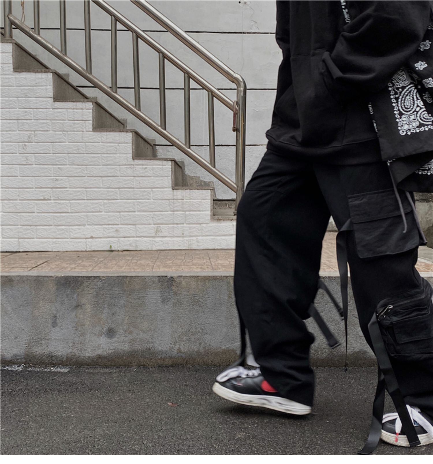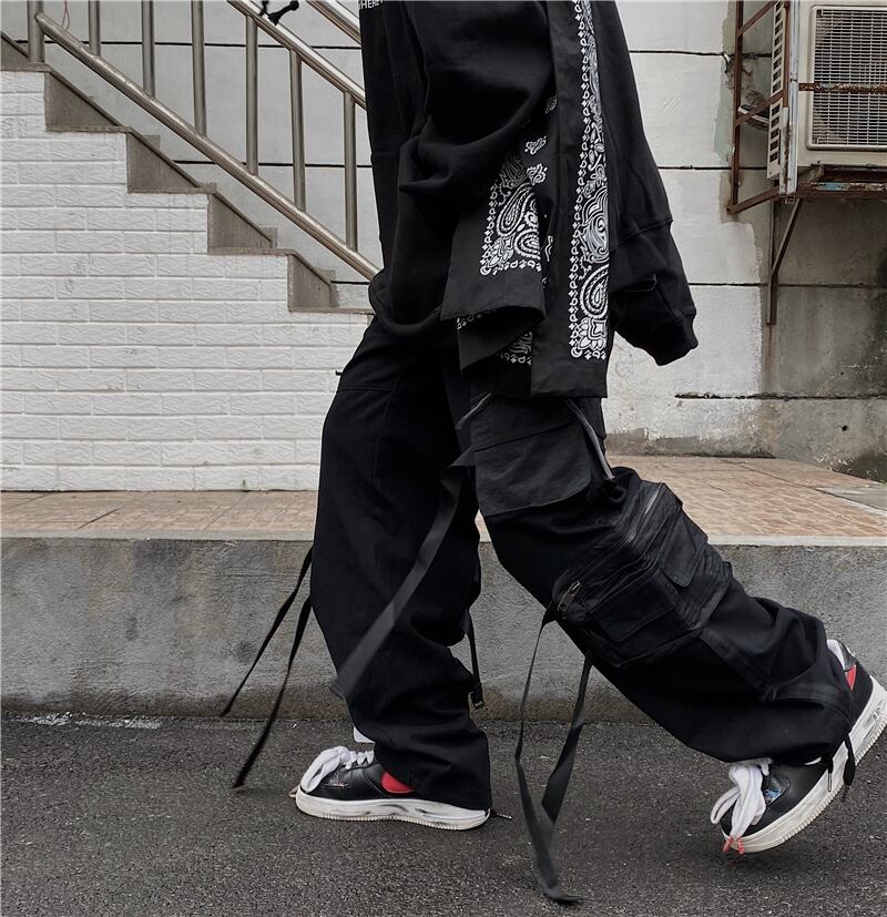 パンツレディース韓国ファッショントレンドジッパーブラックパンツ ルーズ薄手カジュアル ストリート スタイル デーモン75284188283