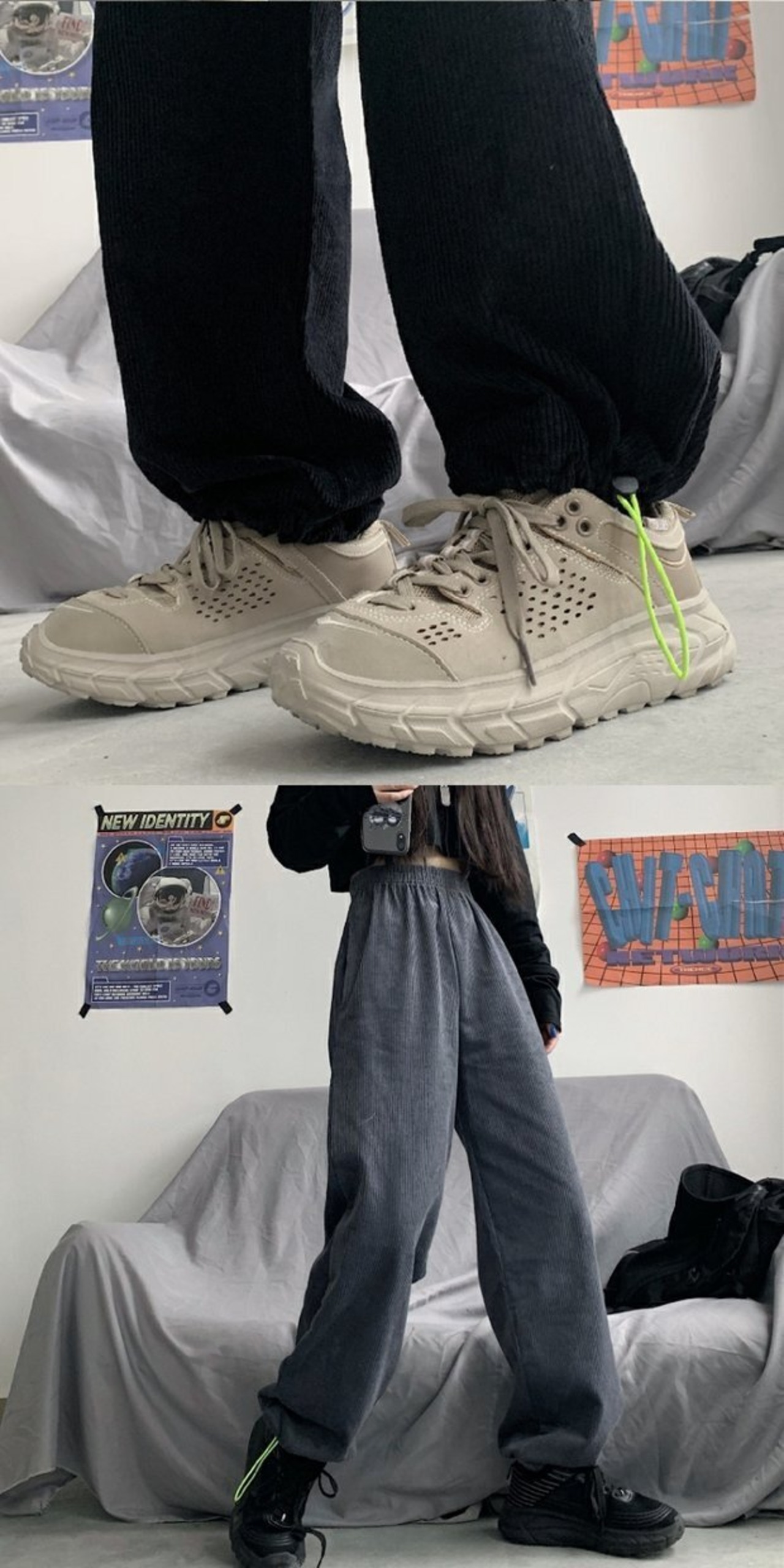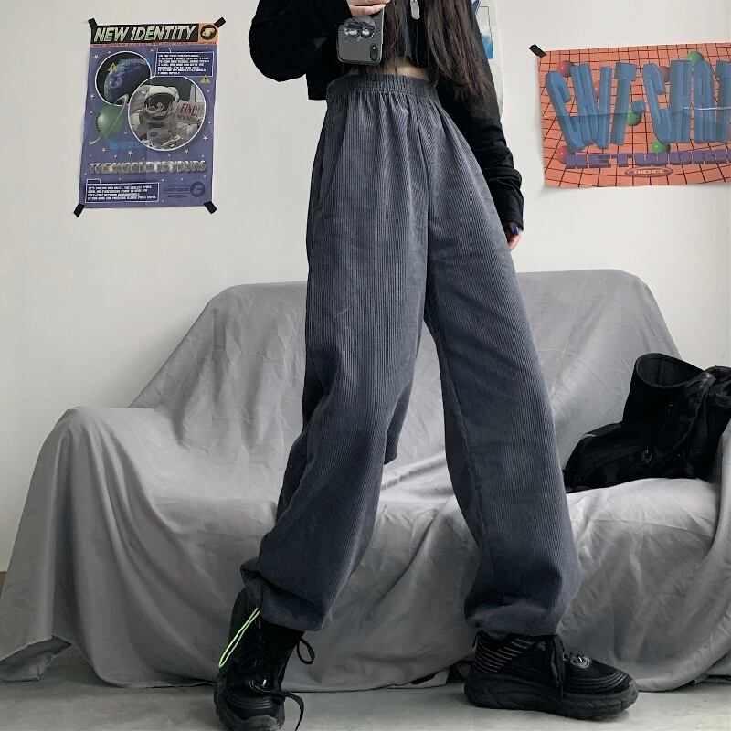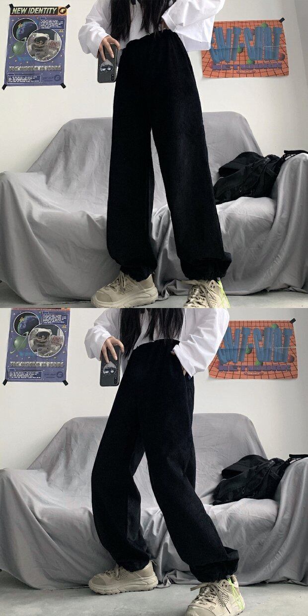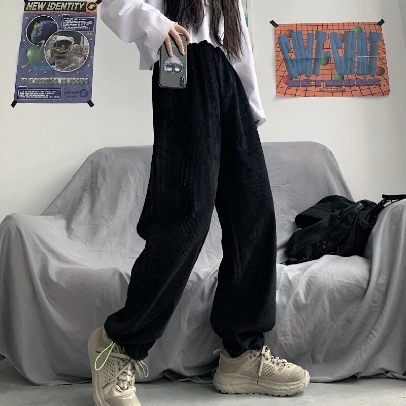 パンツ レディーストレンドコーデュロイハイウェストウェストルーズ薄手ブラック ウエスト デーモン93833289825
