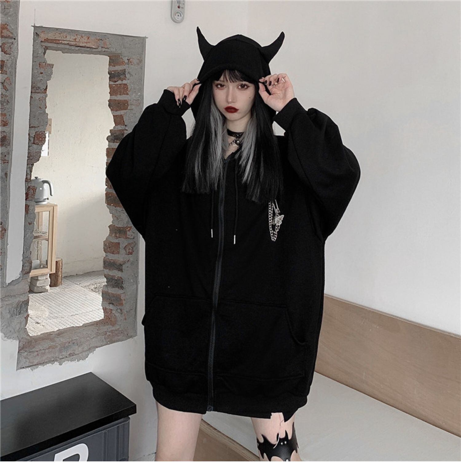 セーター レディース秋物韓国ファッショントレンドダークフードルーズジャケット ロング オータム スタイル 長袖 デーモン96499398669