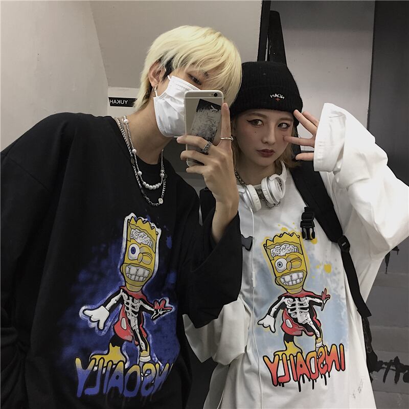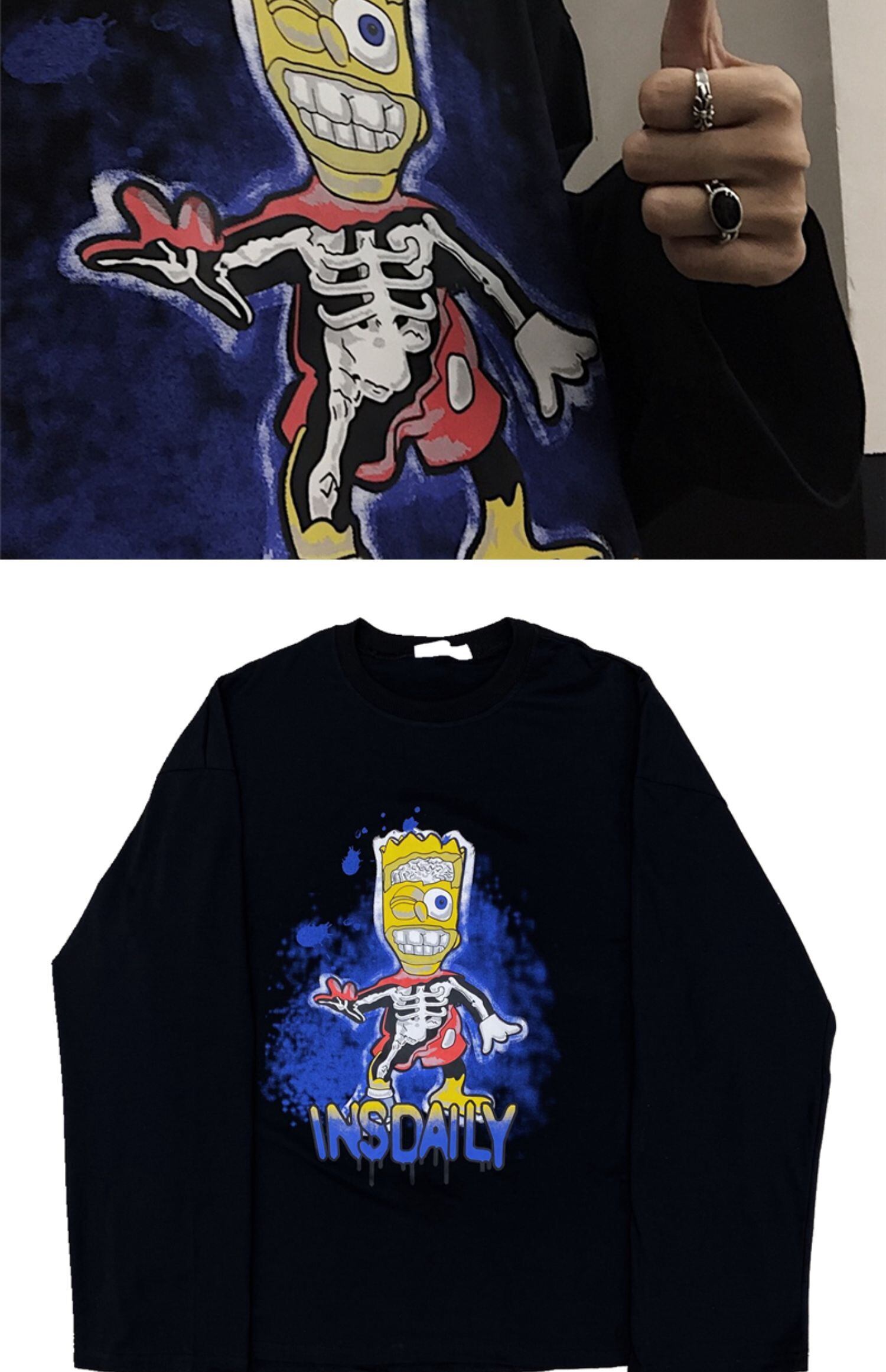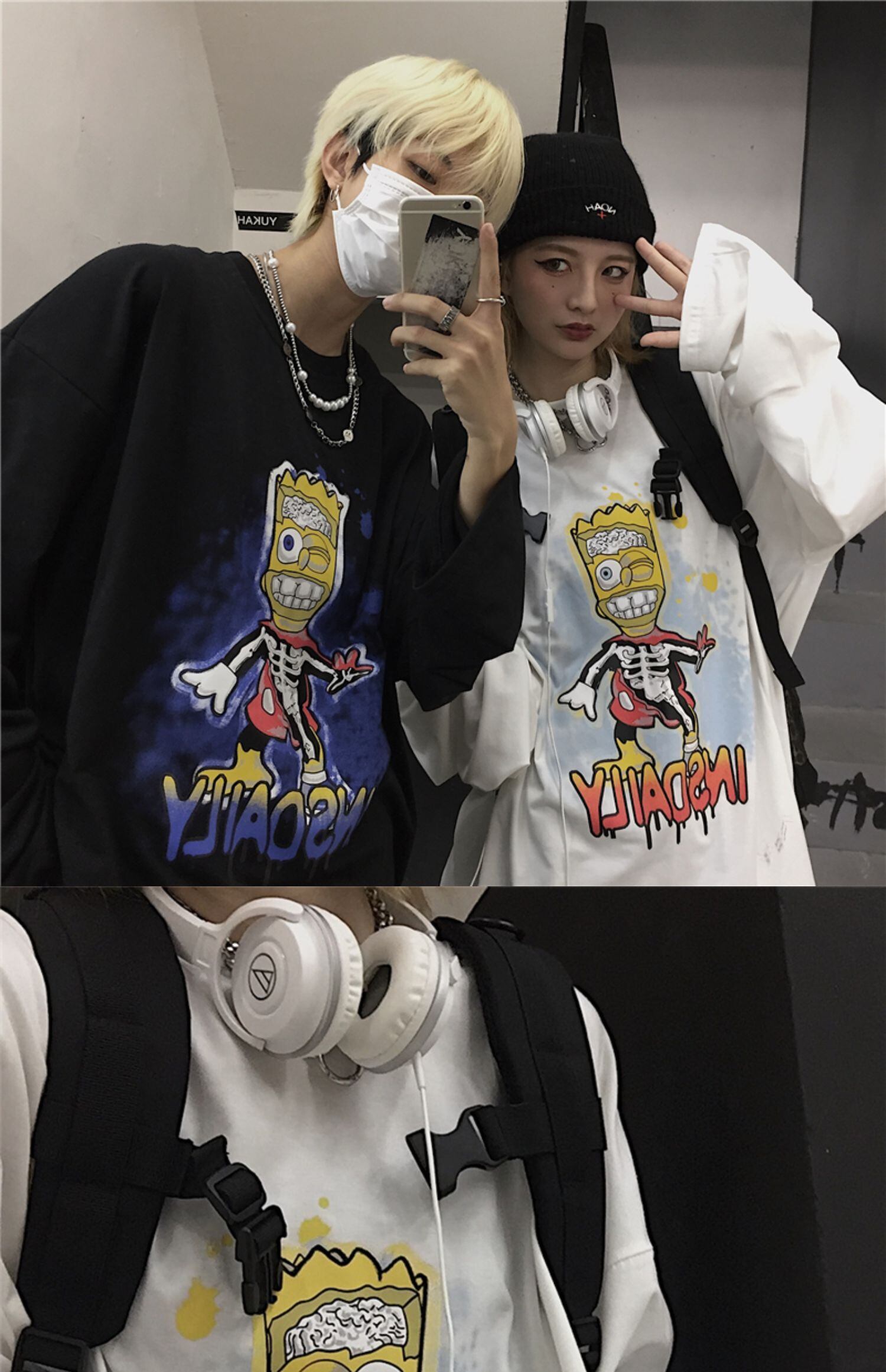 Tシャツシャツ レディース秋物韓国ファッショントレンドプリントルーズトップス ゆったり ロング オータム ボーイズ スタイル 長袖 デーモン67536801028