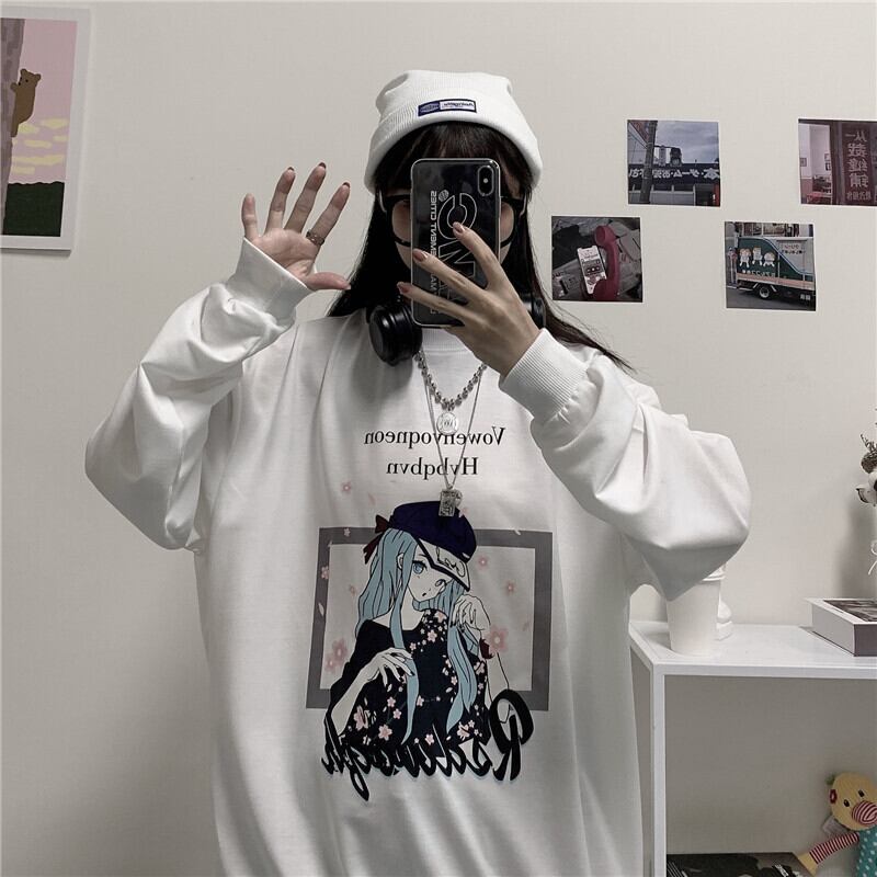 トップス 秋物韓国ファッショントレンドスタイルホワイトルーズプルオーバー セーター ロング 原宿 オータム 長袖 デーモン73478694666